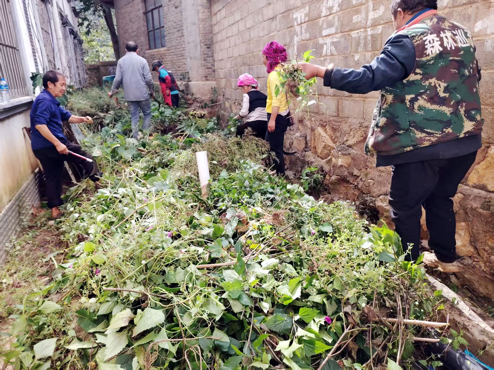 针对村域主次干道、村组连接线及房前屋后的环境问题,村委会“分类施策、精准整治”:党员干部修剪路边高草杂灌,保障通行安全与景观整洁;村民分组清理沟渠垃圾、转运垃圾池积存物、整理房前屋后杂物;护林员用专业设备清理林地边缘杂草,消除火灾隐患;对卫生死角与顽固垃圾,采取“人工+机械”方式彻底清理,让村域角落焕新。