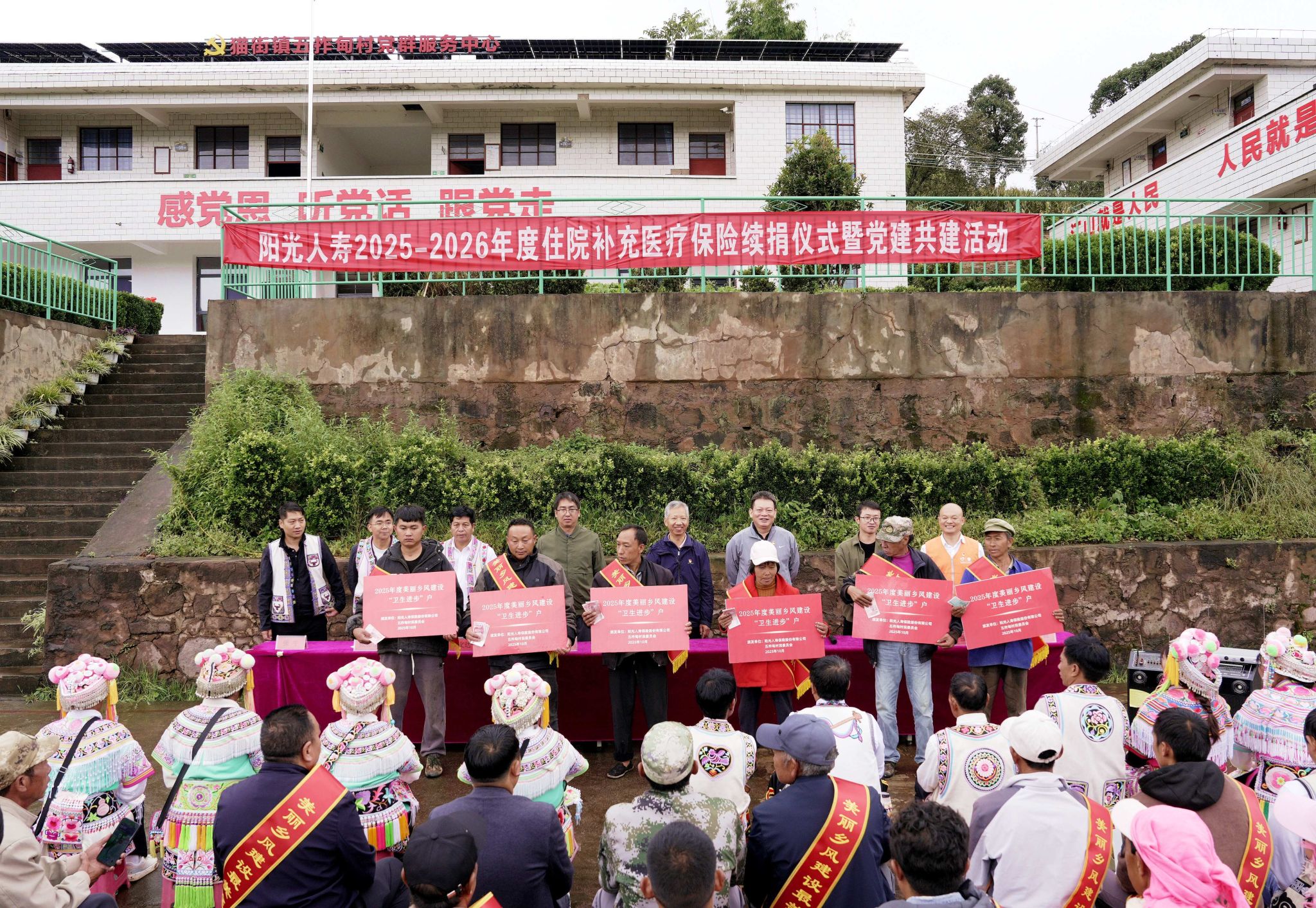 2025年10月17日,楚雄州武定县猫街镇五拃甸村委会热闹非凡。在武定县猫街镇党委、镇政府的指导下,阳光人寿2025-2026年度住院补充医疗保险续捐仪式暨党建共建系列活动在此成功举行。此次活动以党建为引领,充分彰显了金融工作的人民性,切实提升了群众的获得感与幸福感,为巩固拓展脱贫攻坚成果与乡村振兴有效衔接注入强劲动力。