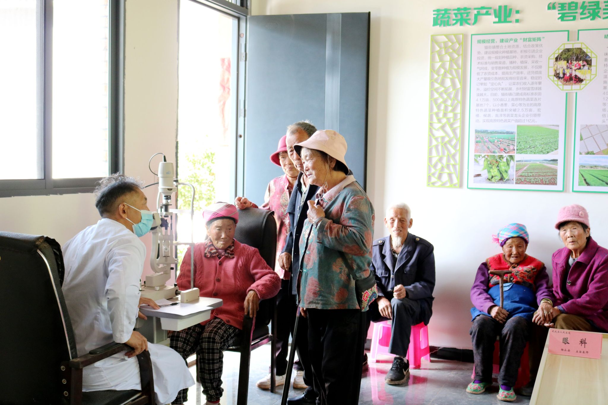 下午2点,老人们在工作人员搀扶引导下走进活动室。武定县人民医院、镇卫生院及村卫生室医护人员已组成服务小队,做好准备。“爱心关怀”义诊区,医生为老人测血压、查血糖并记录数据,指标异常时反复核对;眼科诊疗区前很快排起长队,医生用专业仪器检查、问诊开方,病情严重者叮嘱及时到医院进一步诊疗,病情较轻者告知保护措施及用药注意事项。同时,消化内科、呼吸内科、骨科等集中诊疗区,医生认真聆听老人病症描述、观察病痛部位以诊断病情,并结合秋冬季特点普及养生知识、教授实用保健动作;针对高血压、糖尿病等老年常见慢性病,从饮食搭配、日常锻炼、用药细节等方面细致讲解,让老人们在家门口享受到专业医疗服务,心里满是踏实与温暖。