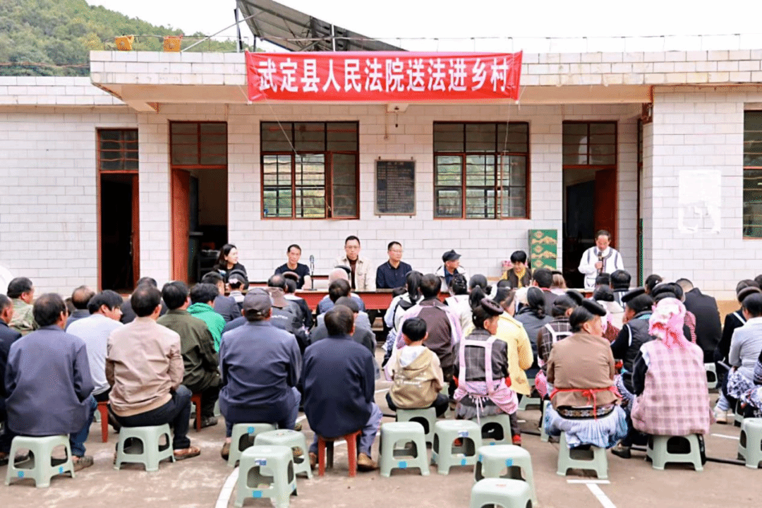 近日,武定县委统战部、武定县人民法院与高桥镇人民政府携手,走进老滔村委会白脸岩村,联合开展了一场内容丰富、贴近生活的“送法进乡村”普法宣传活动,为当地100余名苗族群众送去了一道法治“大餐”,深入宣传贯彻党的方针政策的同时,进一步提升基层群众法治意识。