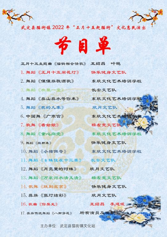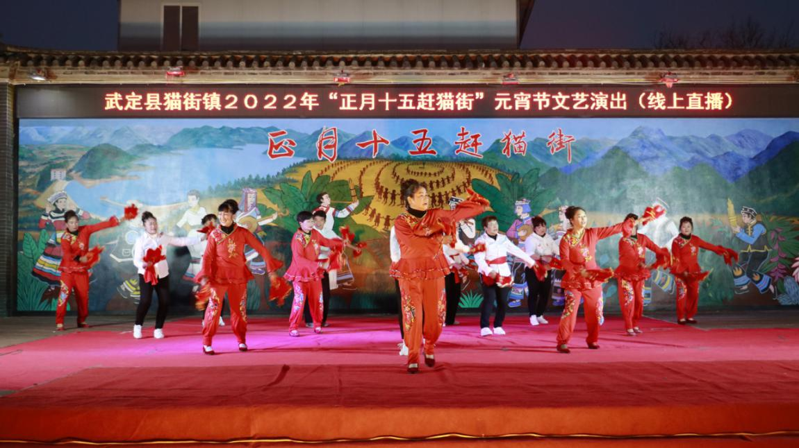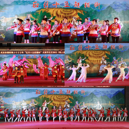 由于受疫情影响,今年的猫街正月十五传统文化节的文艺演出由线下转移到了线上举办,采用视频直播的形式进行展播。本次活动除了文艺演出以外还有乡村数字广场电影、旅游开发合作联谊活动、特色产品展销、猫街休闲自驾游、跌脚狂欢、群众广场舞等丰富多彩的内容。