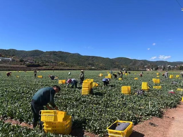 “上个月刚刚销售了1500余吨蔬菜,现在气温回暖,正是育苗的最佳时间,等雨水一来,又是一波好收成”。据蔬菜基地负责人李学跃介绍,蔬菜基地种植规模已经扩大到4000余亩,采取“企业+合作社+农户+市场”的利益联结模式,开展订单种植,实行种植、管理、销售一体化经营,可实现年生产生态蔬菜18000吨、实现年经济效益13200万。种的蔬菜主要是菜心、芥蓝、荷兰豆、生菜、娃娃菜等,主要为东南亚国家以及深圳、上海等一线城市保供蔬菜。