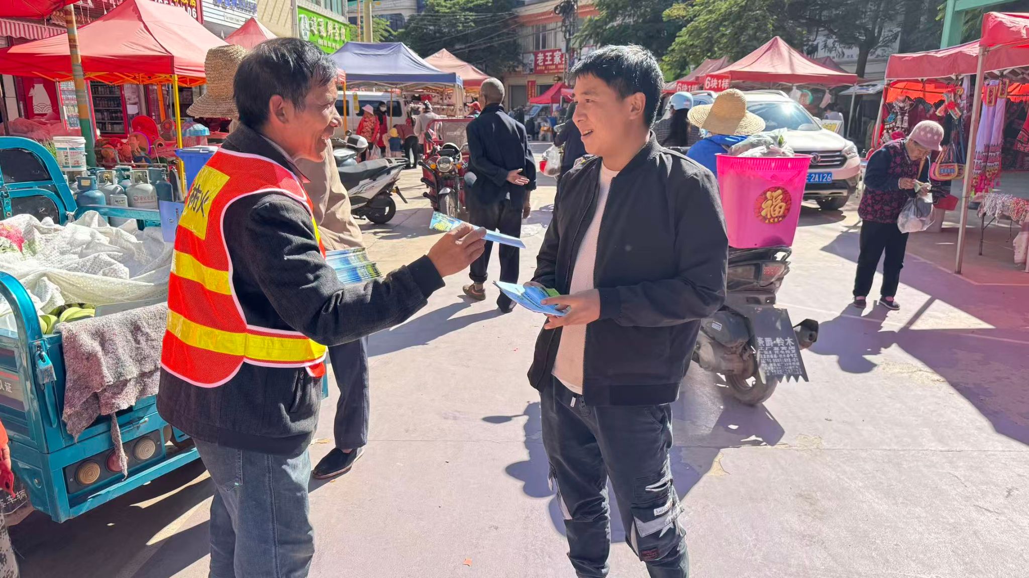 宣传人员利用集镇赶集日人流密集的有利时机,在街道旁设置宣传台,悬挂“森林防火常年抓,保护森林靠大家”横幅,吸引过往群众驻足。工作人员向赶集群众及沿街商铺经营者发放《武定县森林草原防灭火安全知识宣传手册》及“森林防火重于泰山”宣传单等资料,并结合当地方言,围绕防火期核心要求展开讲解。从“严禁携带火种进山”“禁止在林区吸烟”等基本禁忌入手,把专业知识转化为群众听得懂、记得住的“家常话”。