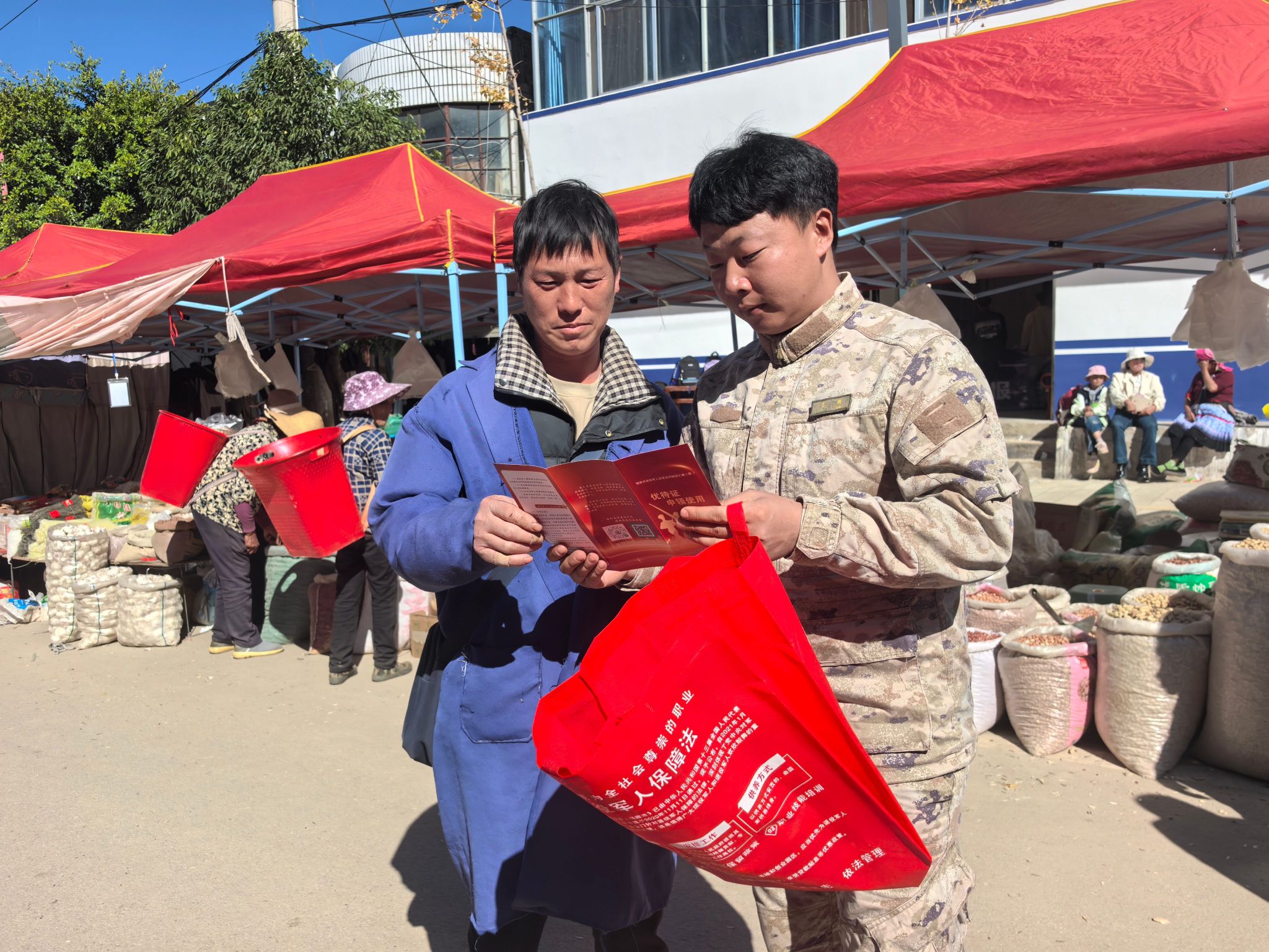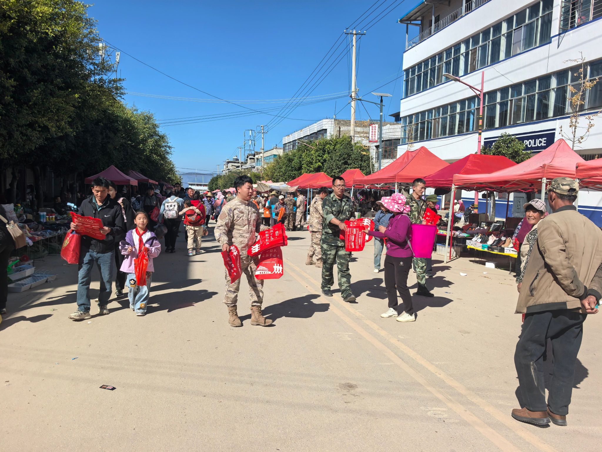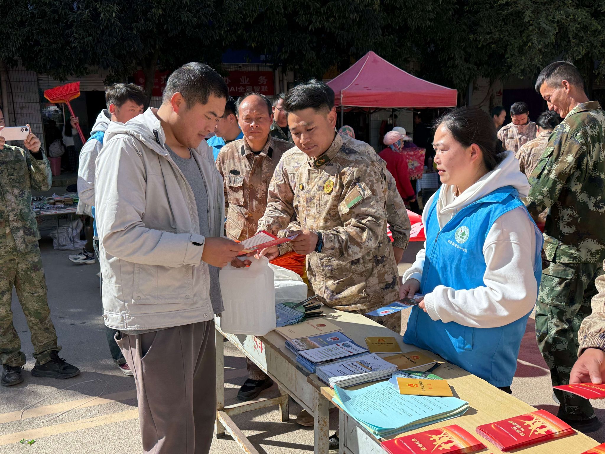活动当天,来自全镇8个村委会退役军人志愿服务分队的志愿者统一身着迷彩服,与司法、派出所等职能部门工作人员共同在集镇主要路口设立法治宣传点。现场通过悬挂宣传横幅、发放普法资料、设立法律咨询台等形式,向过往群众系统普及宪法知识,并重点解读《楚雄州退役军人政策适用解答汇编》等相关法规政策。志愿者结合自身在“法律维权”服务方向上的专业特长,针对群众日常生活中常见的涉法问题提供面对面的咨询与解答,引导公众通过合法途径表达诉求、维护权益,有效增强了群众的法治观念和依法办事意识。