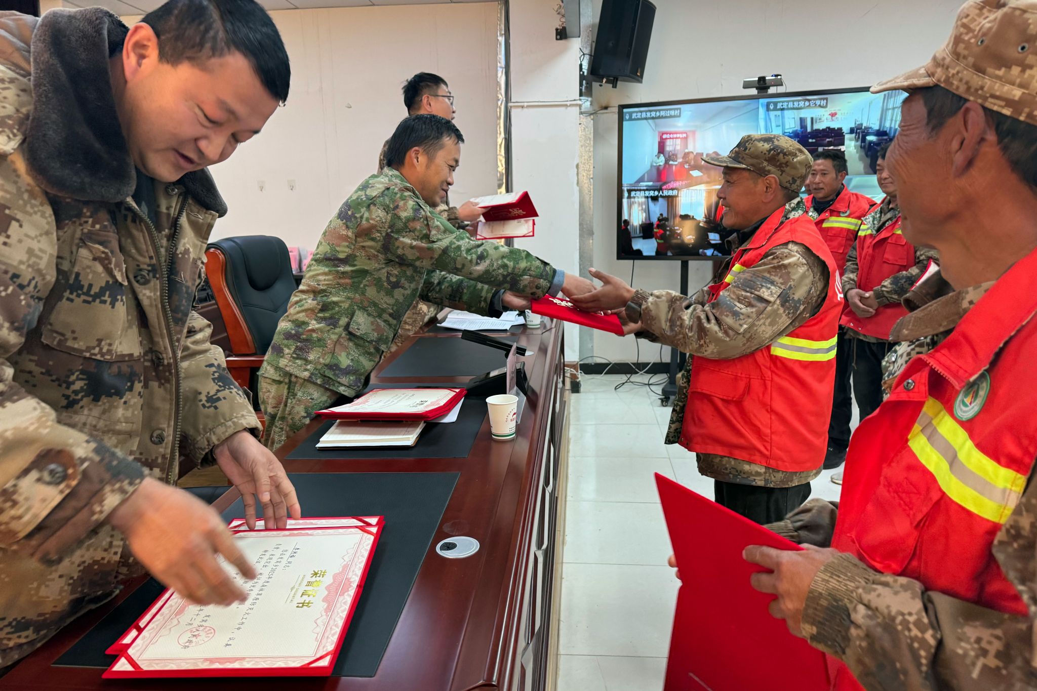 会议开始,由乡党委书记潘在华,乡党委副书记、乡长李晓韬,乡党委委员、副乡长陈光林为杨建文、鲁自成等12名优秀护林员颁发2025年度优秀护林员证书,充分肯定优秀护林员在过去一年里扎根一线、坚守岗位,在森林草原巡护值守、隐患排查、宣传引导等工作中的辛勤付出与突出成效,以先进典型树标杆、立榜样,激励全乡防灭火工作人员以优秀为榜样,主动担当、积极作为,切实扛起森林草原防护重任,持续筑牢生态安全第一道防线。