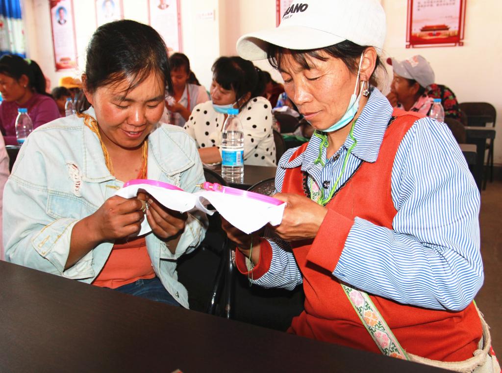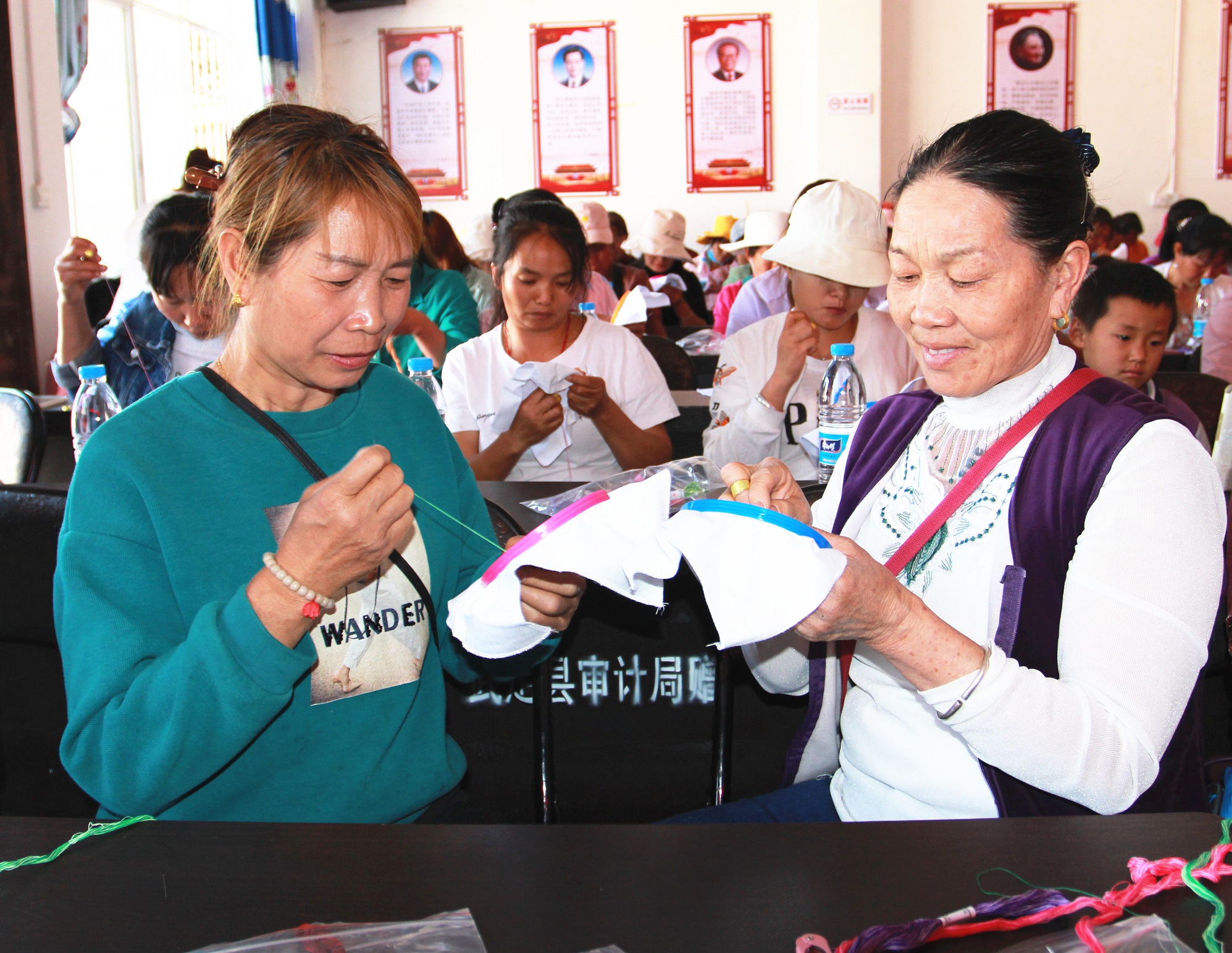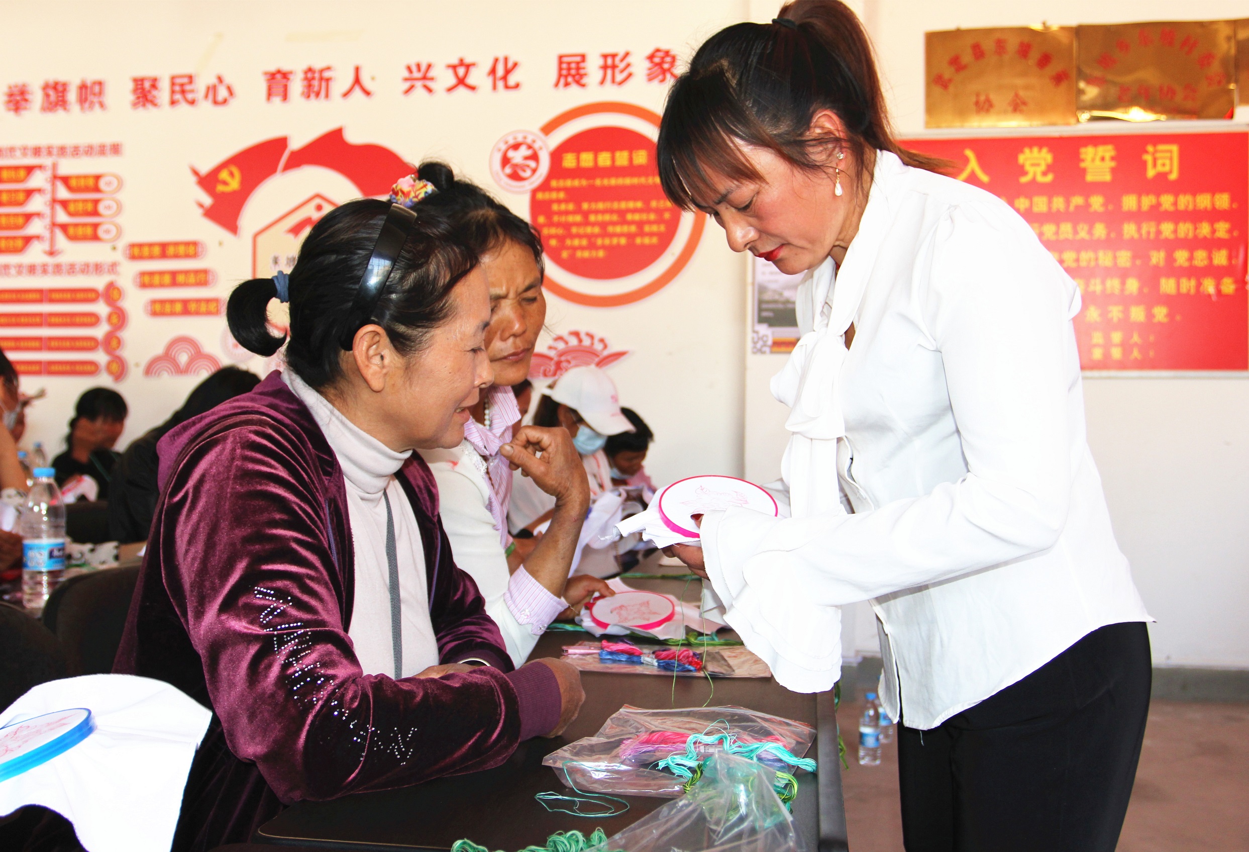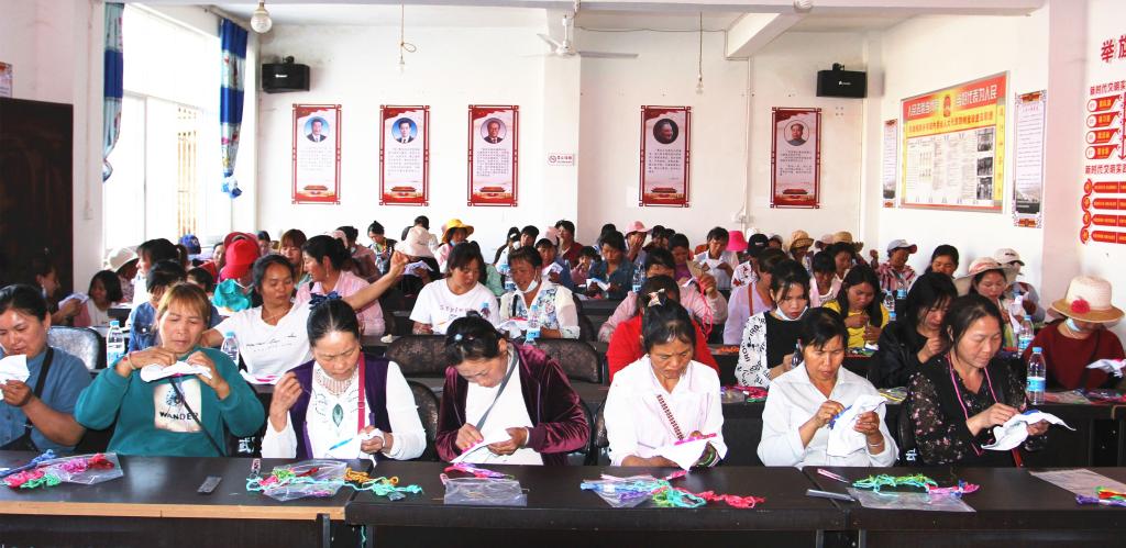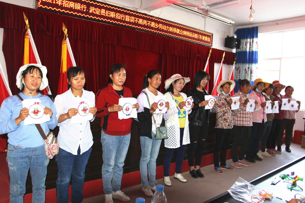 “你的这个花瓣应该从中心点开始绣,不能从上绣到下......”在东坡乡三十多度的高温下,也挡不住妇女同胞们的学习热情,为进一步提高妇女思想素质、生产技能和生活品质,让更多的农村妇女通过手工刺绣拓宽就业创业渠道,助力乡村振兴。3月10日,东坡乡妇联在招商银行和武定县妇联的支持下,在东坡村委会成功举办了招行盲袋不离岗不离乡劳动力转移就业刺绣培训班,共有100名妇女参加培训。