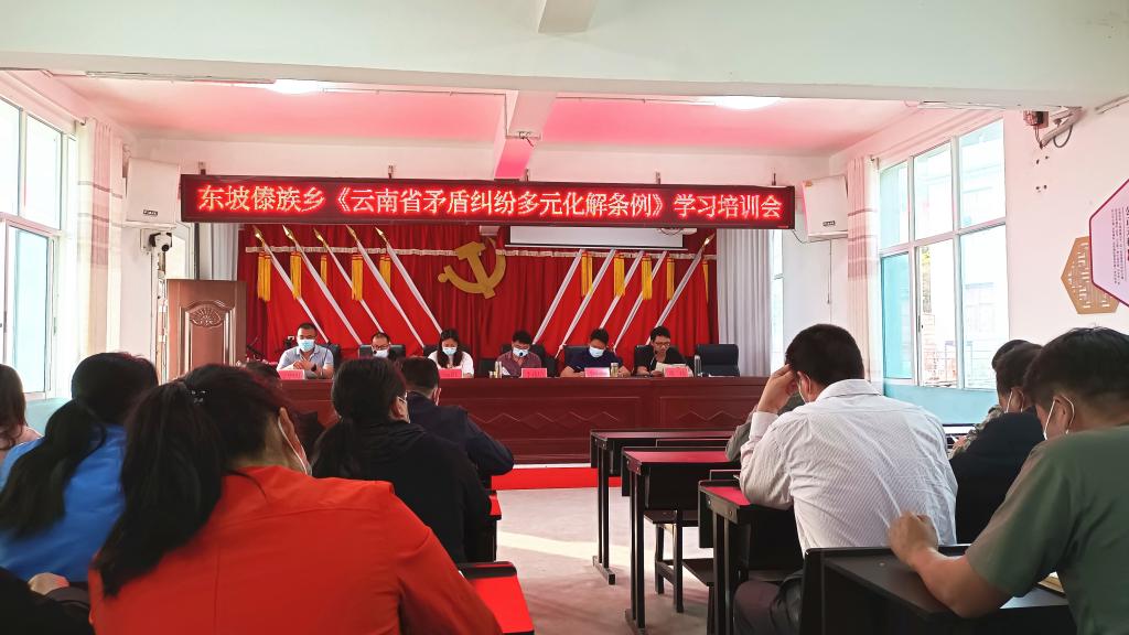 为认真贯彻落实《云南省矛盾纠纷多元化解条例》,进一步做好矛盾纠纷多元化解工作。3月14日,东坡傣族乡组织学习《云南省矛盾纠纷多元化解条例》,全乡干部职工、各村人民调解委员会主任、全体驻村工作队员共计60余人参加。