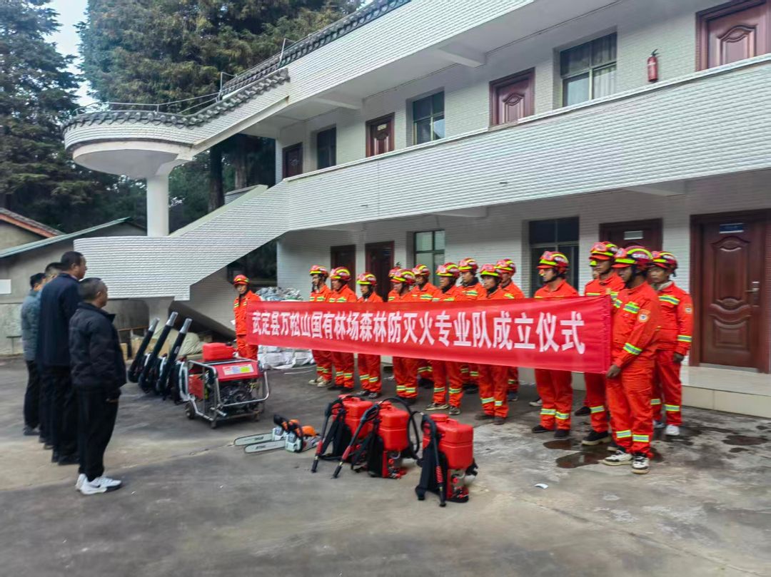 为切实强化基层森林火灾应急处置力量,筑牢森林防火安全防线,12月29日,武定县万松山国有林场半专业扑火队正式成立并举行首次综合应急演练。州森林防火指挥部副指挥长、州林草局副局长王明辉亲临现场指导,并为林场配备了防火物资,同时率领防灭火专业团队进行现场教学培训。县森林防火指挥部指挥长周智荣出席活动并对专业扑火队建设与履职提出明确要求。