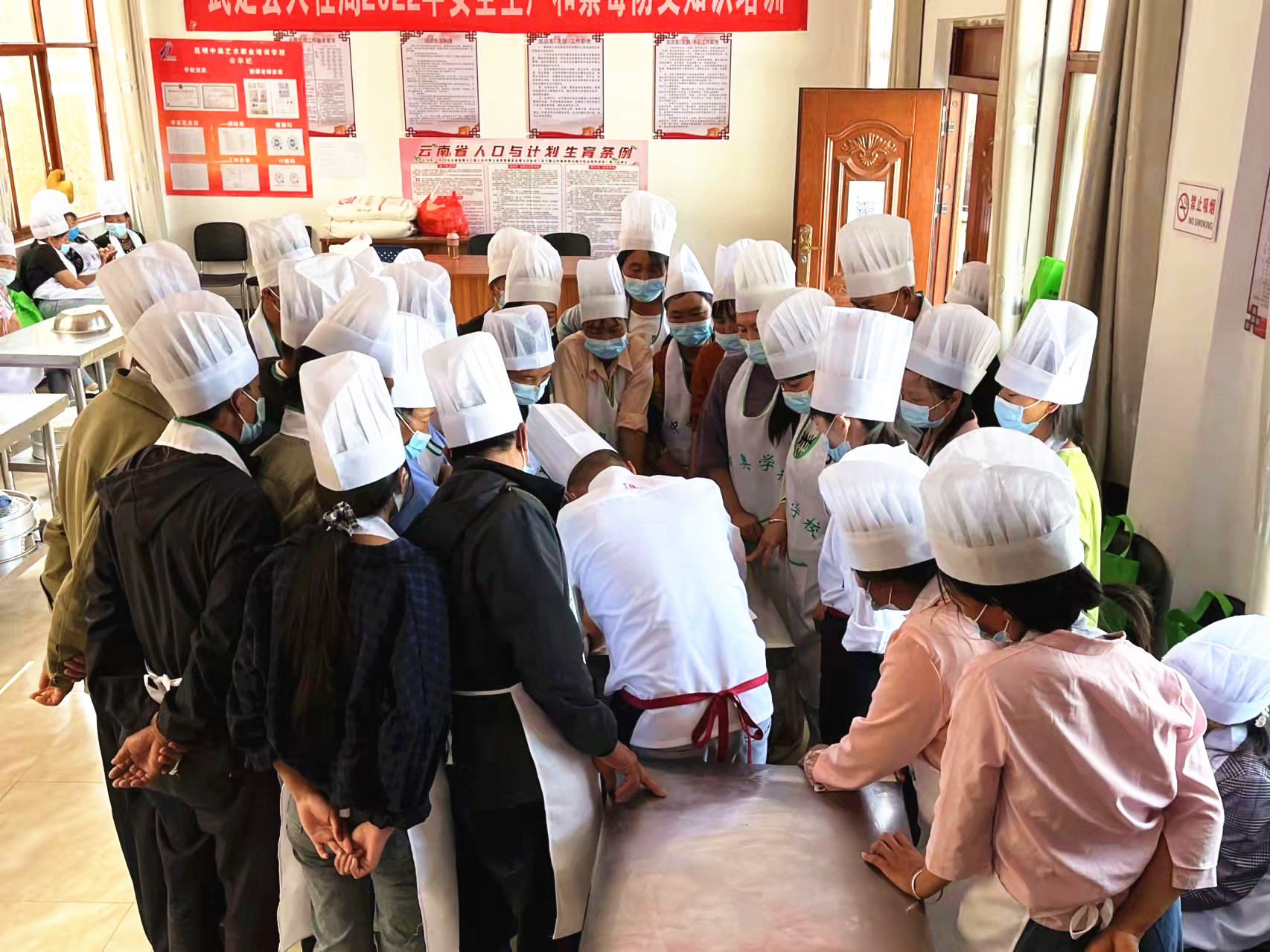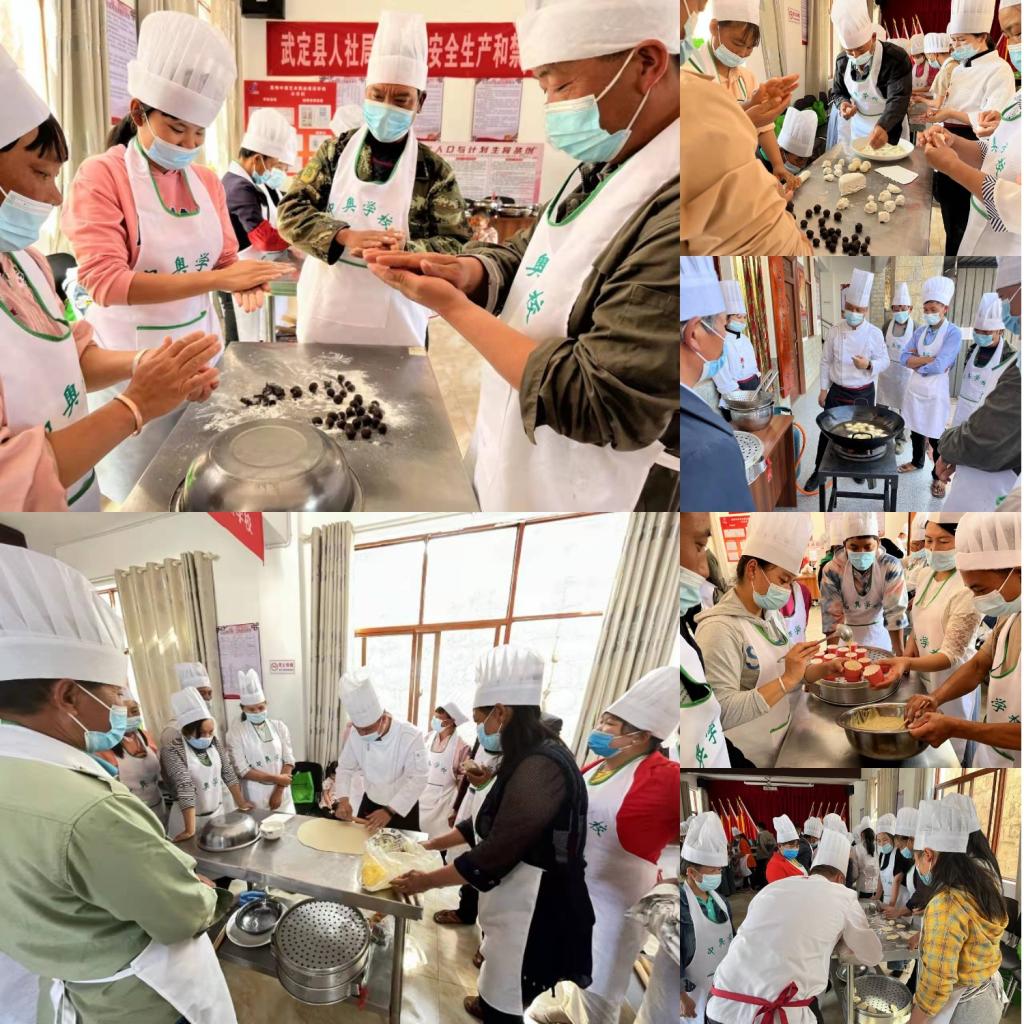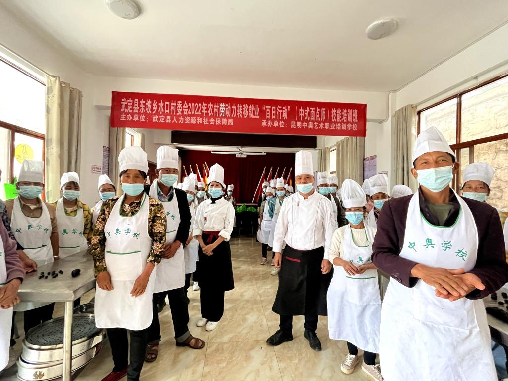 为提高农村劳动力特别是贫困劳动力技能水平,拓宽广大农村劳动力的就业创业能力,进一步巩固脱贫攻坚成果,助推乡村振兴。近日,由武定县人力资源和社会保障局主办,昆明中奥艺术职业培训学校承办的2022年农村劳动力转移就业“百日行动”(中式面点师)在东坡乡水口村委会开班,来自全村的50名已脱贫户及边缘户参加培训。