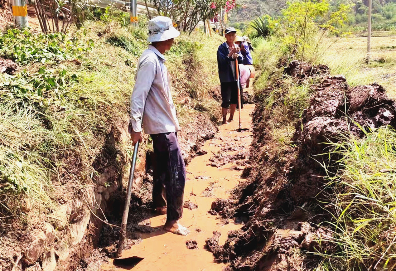 “春天快过去了,夏天马上就来临,雨水跟着就要到了,也是我们低热河谷播种的好时节。我抓紧把这些中沟、圈沟、边沟都梳理好了,到时就不会影响我们放水的时间和速度。现在我们抓紧育秧,几个月后,我们金灿灿的稻谷就可以收进场。”水稻种植大户、致富带头人尹发云边掏沟边信心满满地说。