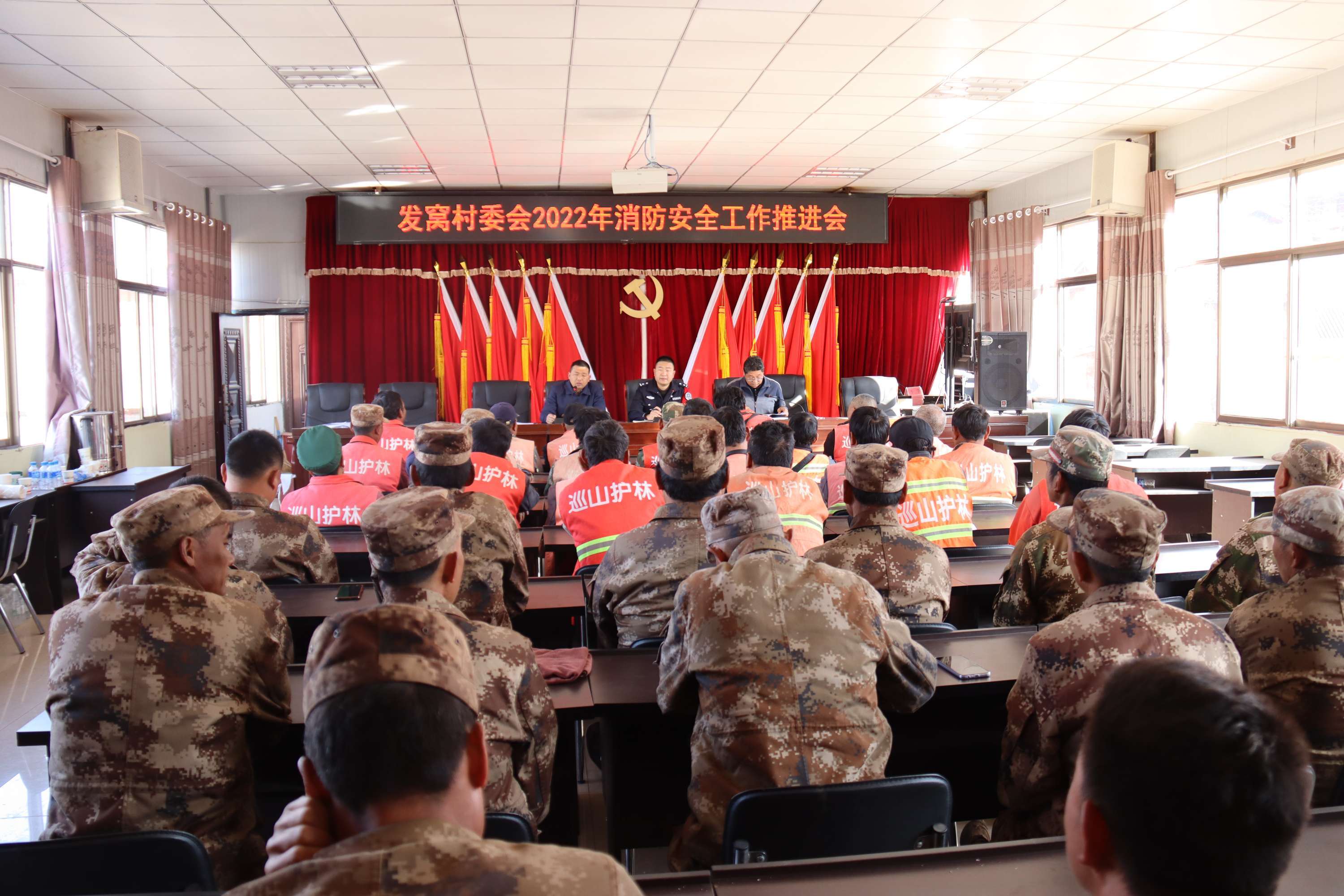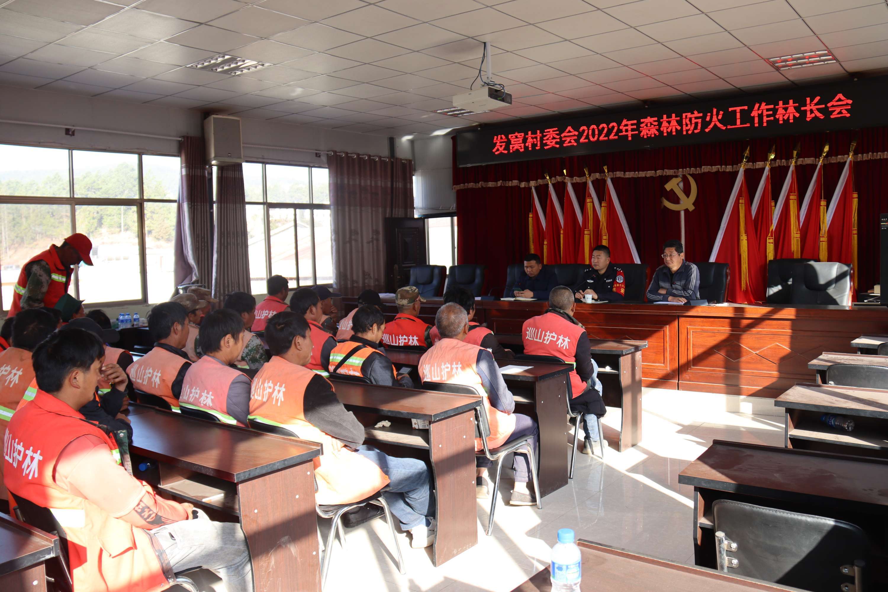 发窝村委会四职干部和21个村民组长、乡林草中心扑火队员和生态护林员共计52人参加了会议。