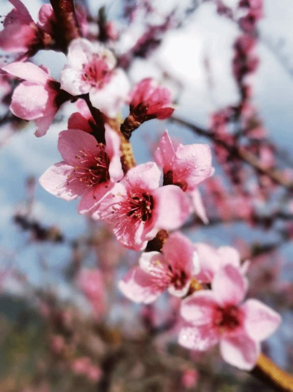 眼下春光明媚,一路好风光。漫漫桃花中,想沏一壶桃花酒,与友人对酌。以天空的蓝,阳光的暖,桃花的淡,微风的浅,画一幅姹紫嫣红的发窝画卷。