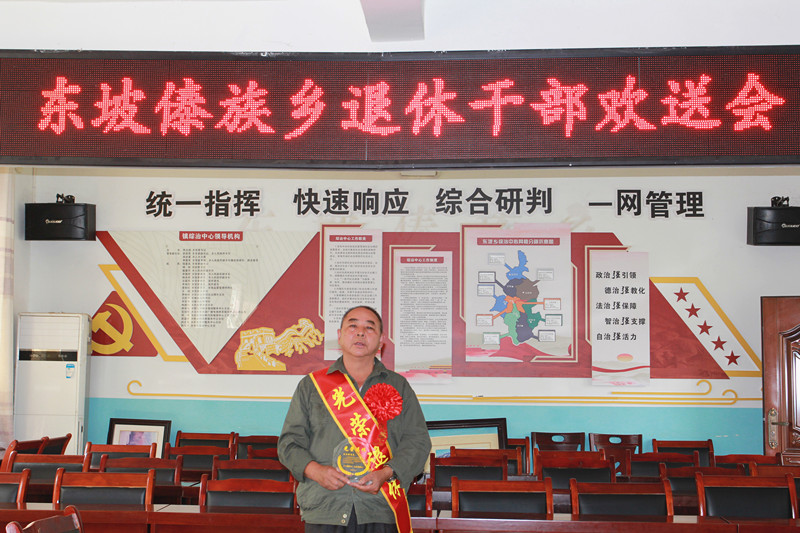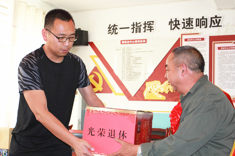 最后,乡党委书记文建华和乡人民政府乡长李蒋培为退休干部颁发了退休纪念品。