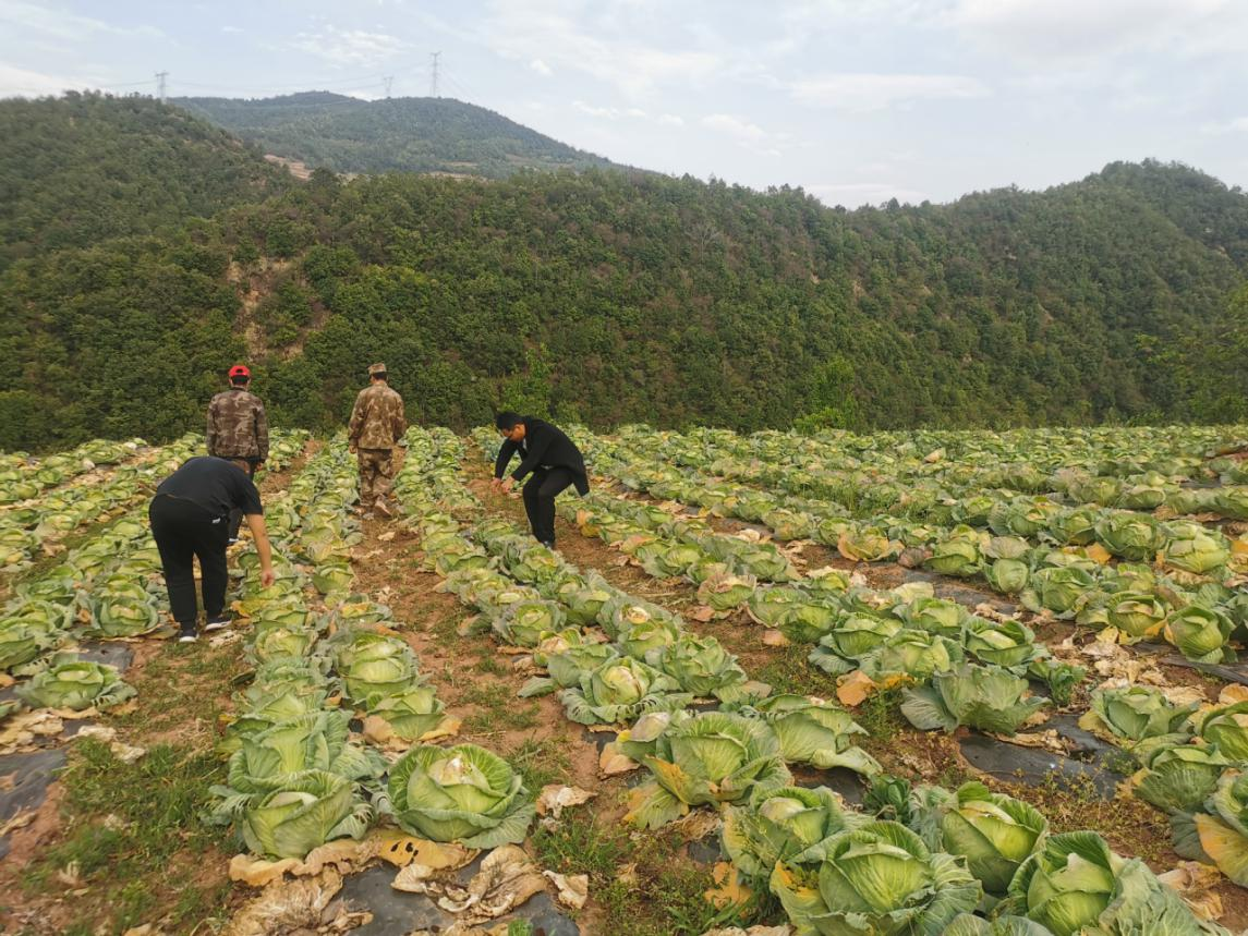 环州村工作队员们通过实地了解情况后联系了农贸市场销售蔬菜的李旭东等零售户预计帮助解决滞销的包菜1.5吨减少直接损失1600元左右,工作队员们通过现场你称二十公斤我称五十公斤的帮带方式为老菜农打下“强心针”。