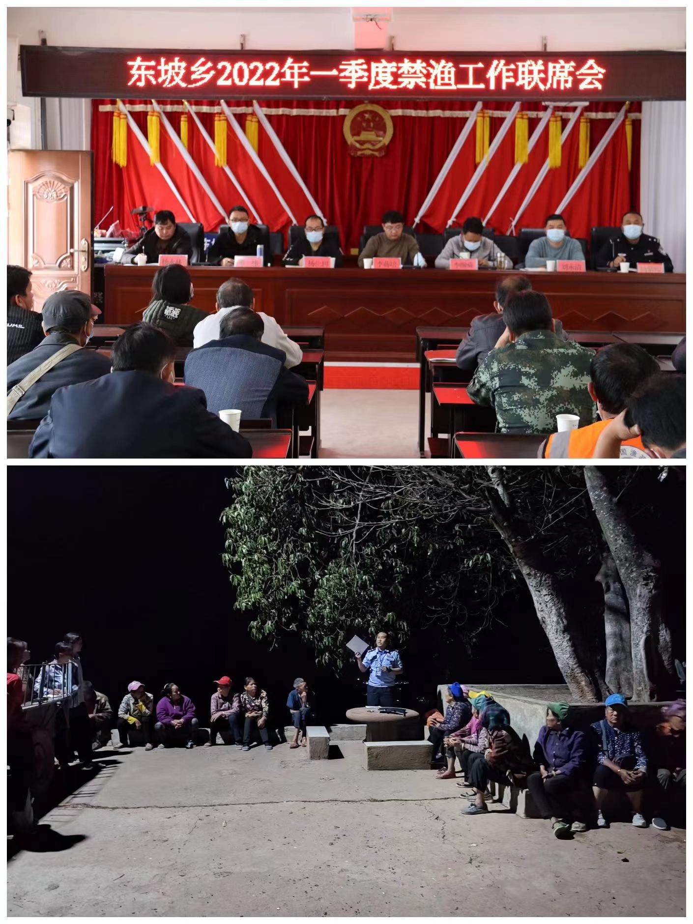 以案释法、严打严查。近两年来,东坡派出所办理数件非法捕捞水产品案件,警告处理多起轻微违法捕捞行为。东坡派出所查获辖区金沙江迂流内,金沙江腊甸村段,沙拉河沓南卧河段,勐果河入乡石标段存在的各类破坏水生生物资源的违法犯罪行为,硕果累累。