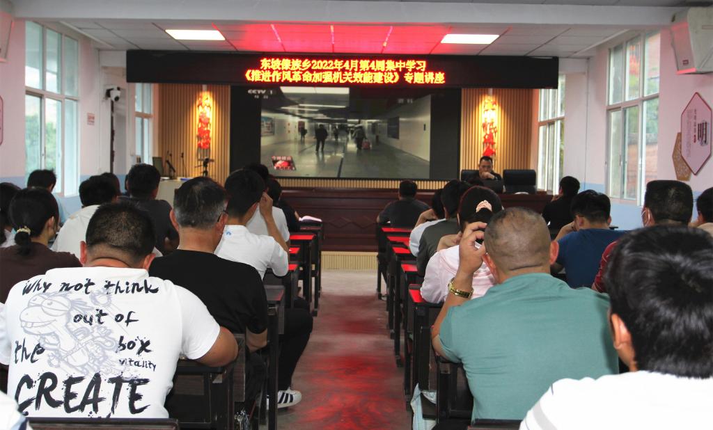 为深入学习贯彻省委关于推进作风革命、加强机关效能建设的相关工作要求,使作风革命、效能革命贯穿于全乡经济社会发展的全过程、各方面。4月27日晚上7点,东坡乡开展推进作风革命加强机关效能建设专题学习,对转作风、提升效能发出了强烈信号,表明了乡党委政府干事创业的坚定态度和决心。全体干部职工60余人参加会议,乡党委书记文建华主持会议并做专题辅导。