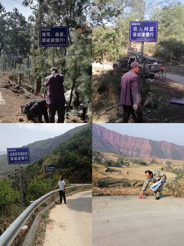 解决“识村”困难。镇党委、政府结合解决道路安全警示、指示牌问题,向上争取资金14万余元,同时解决了村民小组指路牌、终点小组地名牌问题。截至目前,我镇共安装警示标牌和村庄指示牌574块,覆盖辖区8个村委会147个村民小组。对不规范、陈旧老化、字迹或是图案不清晰的警示牌,现场进行了替换;对塌方路段和无安全护栏路段进行情况汇总上报,最大限度确保道路交通安全。