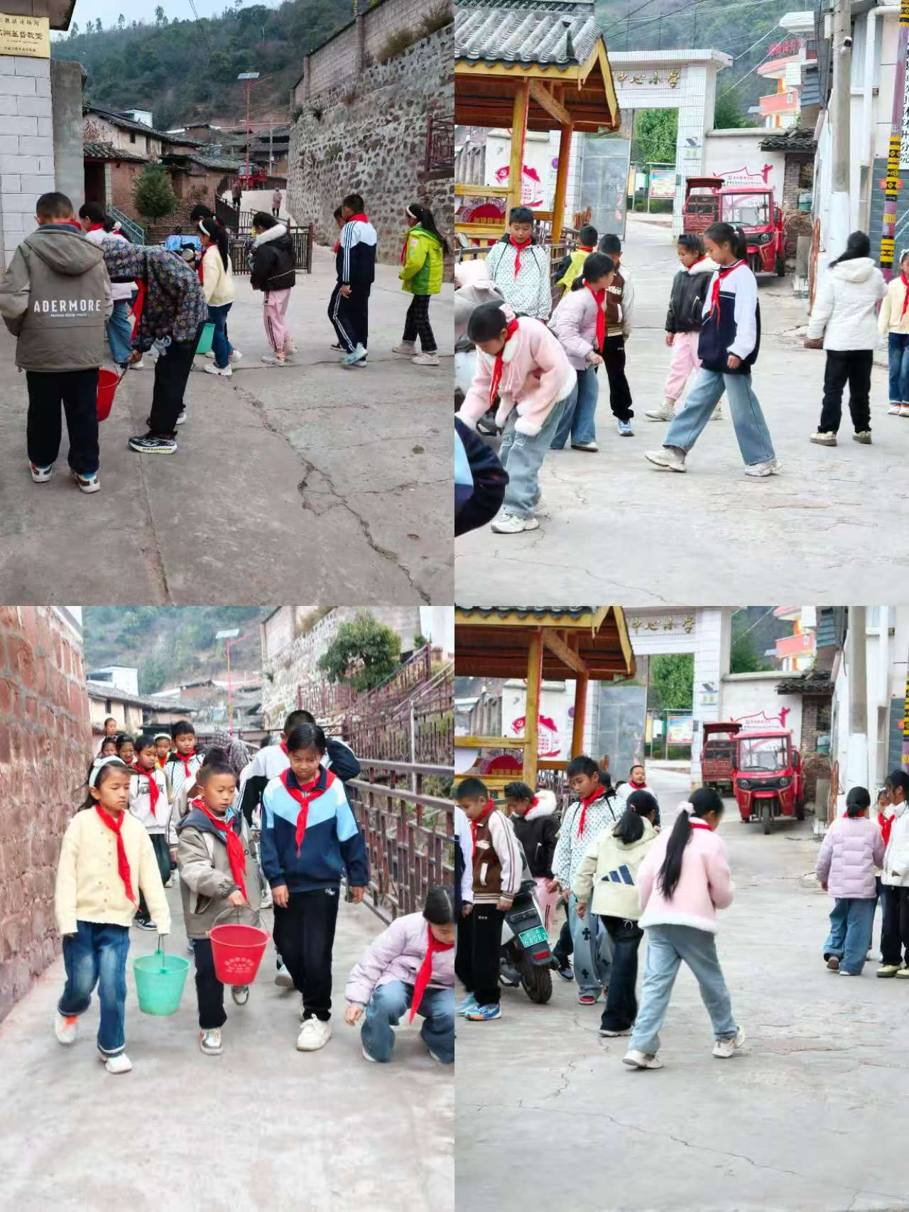 外实践,传承为民初心。雷锋精神不仅体现在校园内,更延伸到服务社会的行动中。环州学子走出校园,以实际行动践行 “为人民服务” 的崇高信念。在乡村水渠边,少年们手持铁锹、扫帚等工具,齐心协力清理水渠内的淤泥、石块与杂物,弯腰躬身、奋力劳作,全力保障排水沟渠畅通无阻,为乡村水利清洁贡献青春力量。在校外公共区域,学子们开展垃圾清理志愿服务,沿着道路、街边绿地、公共广场仔细捡拾白色垃圾、果皮纸屑、废弃杂物,将散落的垃圾一一清理干净,用实际行动守护周边环境整洁,以点滴奉献诠释雷锋精神的时代内涵。
