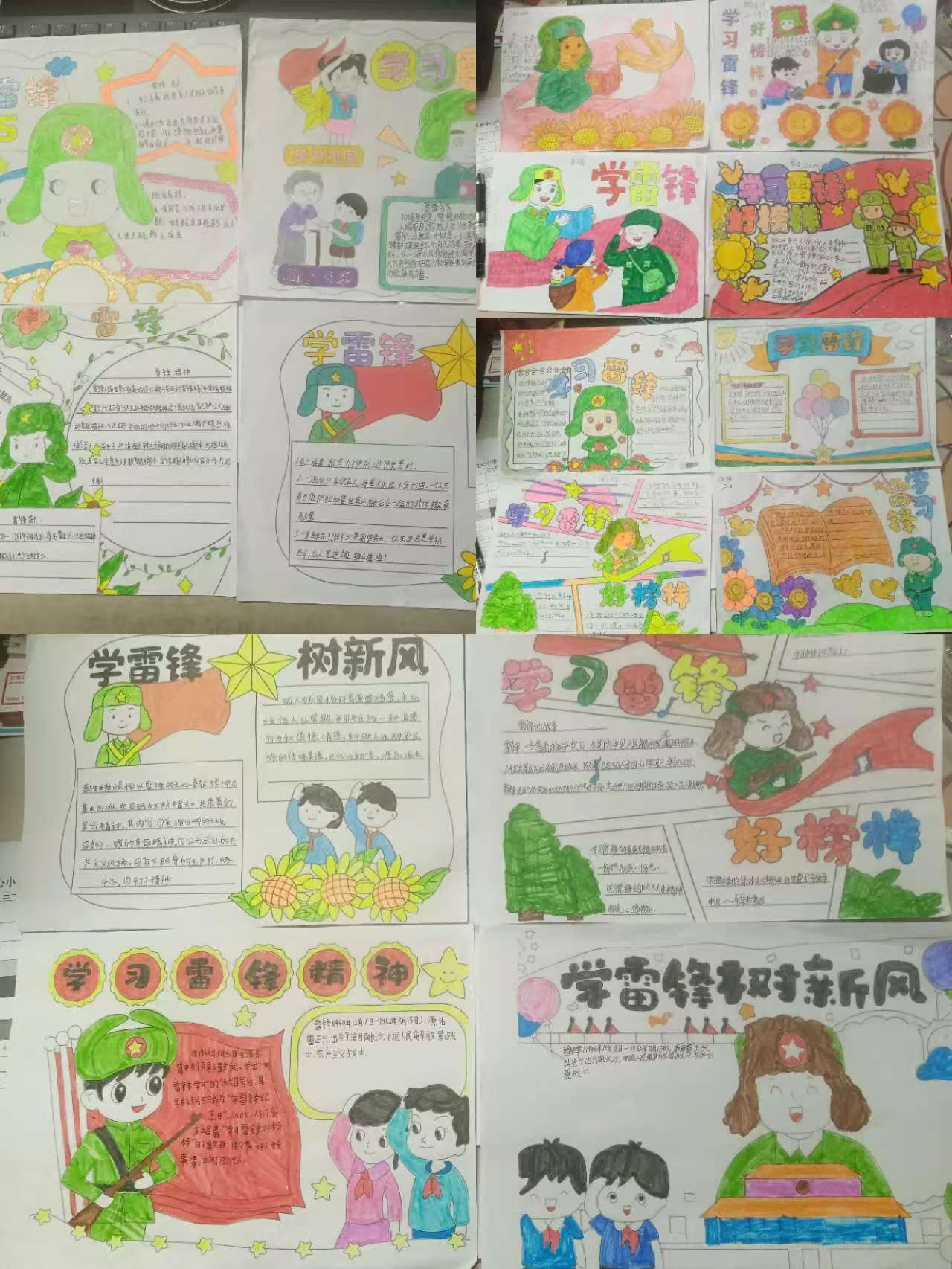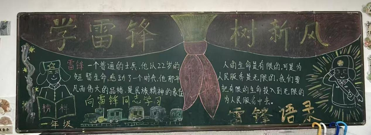 劳动成果展风采,定格成长印记。校园室外墙面上,展示着学子们在劳动实践中创作的各类作品,每一幅作品都凝聚着创意与汗水,记录着劳动中的成长与感悟。这些鲜活的成果,是对学子们奉献精神的最好肯定,也是雷锋精神在校园落地生根的生动见证。教室里,主题鲜明的手抄报与内容丰富的黑板报相映成趣,同学们以笔墨为媒、以色彩为介,书写雷锋故事、描绘劳动场景、抒发奉献心声,让雷锋精神在方寸板报与精美手抄报中浸润心田、薪火相传。