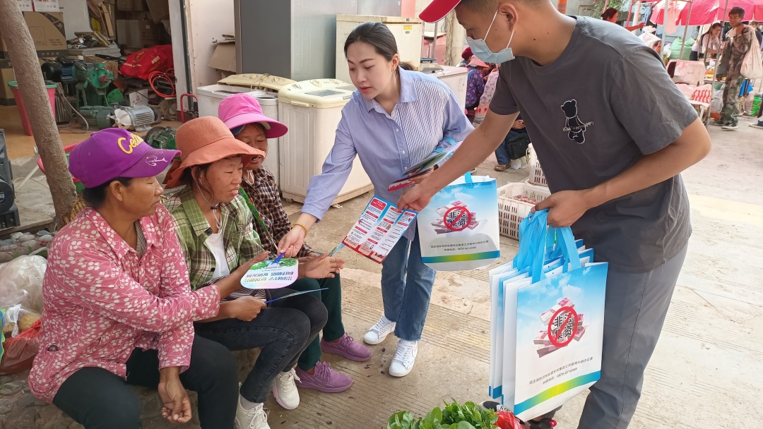 5月26日正值东坡乡赶集日,普法志愿者们在人流较密集的集市拉起横幅,向摊主、赶集群众发放手提袋、宣传手册等宣传品共计500余份,重点对《中华人民共和国民法典》、电信诈骗、《信访工作条例》、反邪教等法律法规常识进行宣传,活动吸引不少来往群众驻足询问,司法所干警均一一详细解答,得到了群众的认可。