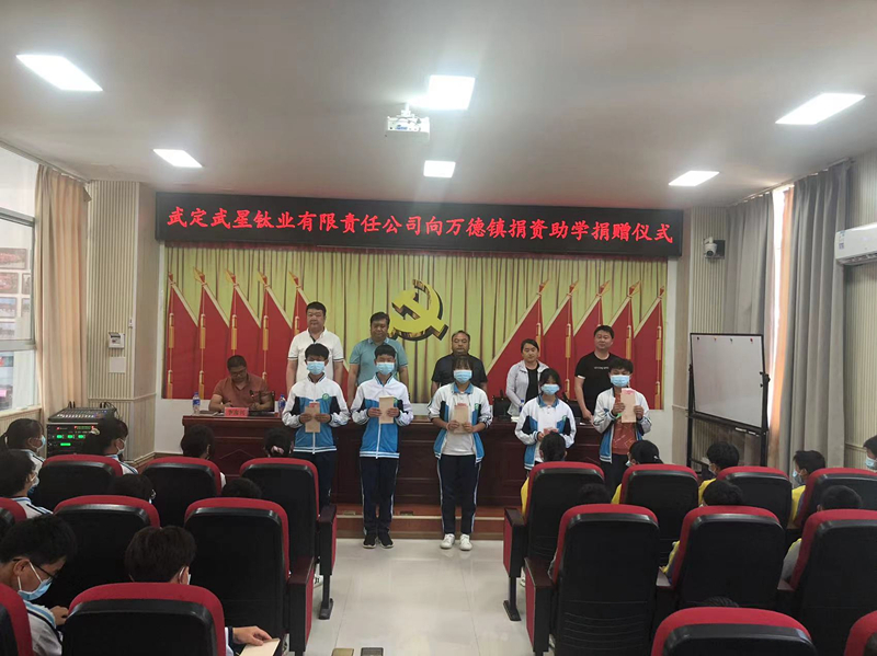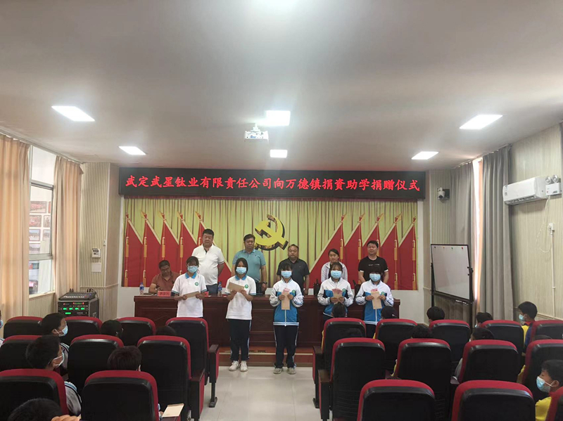 活动现场,武星钛业有限责任公司向万德镇捐赠助学金6万元,镇党委书记古建辉代表万德镇接受了捐赠,并由参会领导现场向中小学学生代表40人发放了助学金。