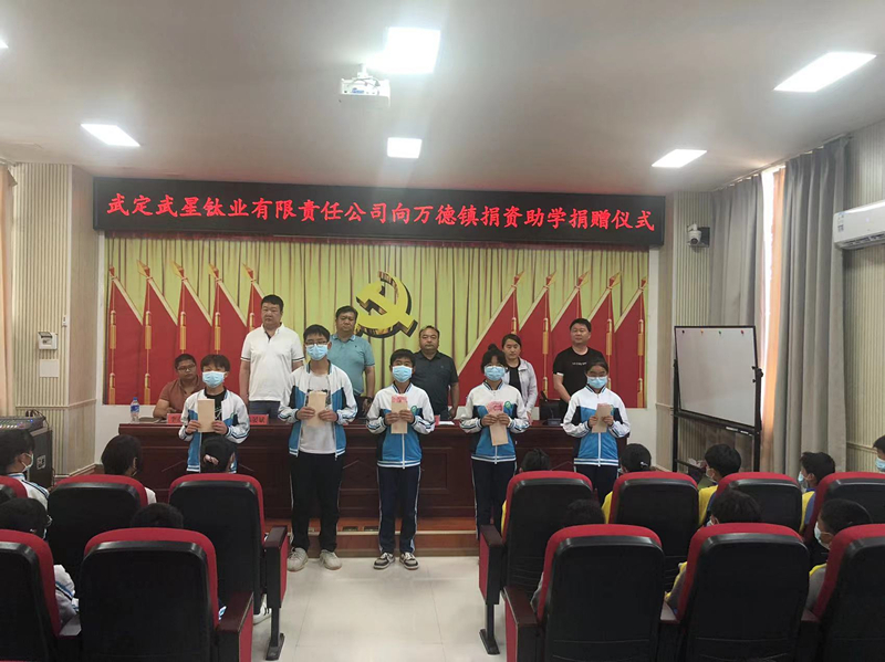 武星钛业有限责任公司代表陈晏斌表示:孩子是国家和民族的未来,关爱孩子,关注教育是我们义不容辞的责任,希望微薄之力,能帮助贫困学生点燃学习希望。同时,希望同学们树立远大理想,乐观勇敢,用自己的勤奋和努力创造美好的未来;要脚踏实地、认真学习,不断增强本领,将来为国家、为社会多做贡献。