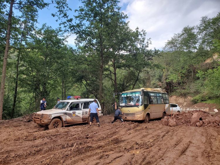 2022年5月23日下午,发窝派出所值班民辅警在长己线开展常态化保通和救援工作,几辆过往车辆陷入泥塘无法动弹,车辆驾驶员捣鼓半天也无济于事,急得满头大汗,正在打电话求援,了解情况后,发窝派出所民辅警迅速展开救援行动。