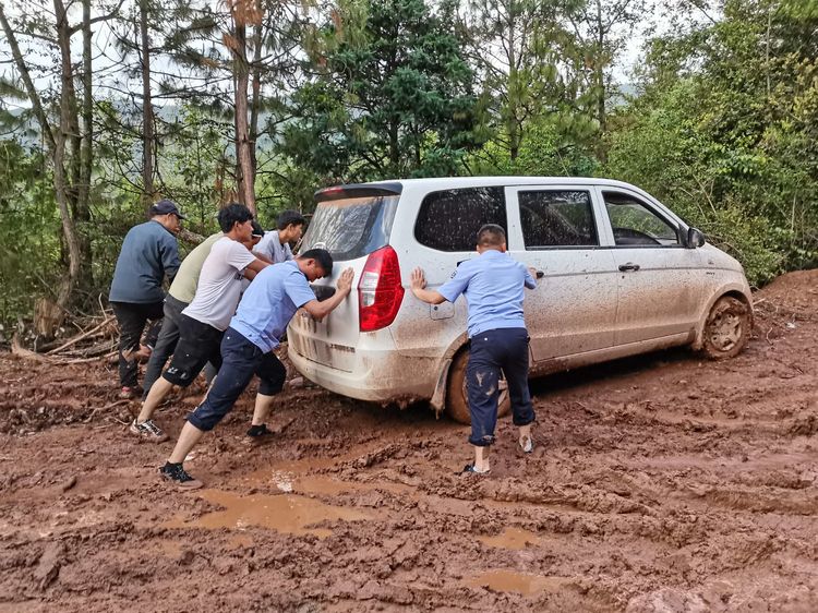 连绵不断的雨天,让正在施工中的长己线泥泞不堪,它就像一位好客的主人拉住了过往车辆匆忙的脚步,这不自恃车技过硬的老司机又被它拉住了…