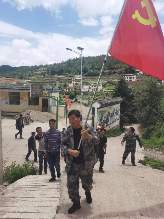 演练分为“险情报告”“紧急撤离”两个部分,在村委会干部说明来由并做了演示后,先由村民小组监测员在全村以敲锣的形式通知群众山洪来了,然后村民小组干部扛着党旗大喊“山洪来了,快跟着党旗走、跟我走”,村民有序跟着党旗按撤离路线顺利撤离到安置地点。