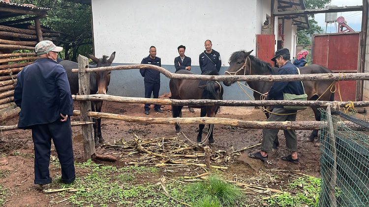 2022年6月7日19时43分,武定县公安局发窝派出所接到阿庆争村委会书记老方电话报警称:“刚才有村民向我反映村子里面跑来三匹马都是黑色的,我核实过了,不是我们村委会辖区的,请派出所帮忙寻找失主。