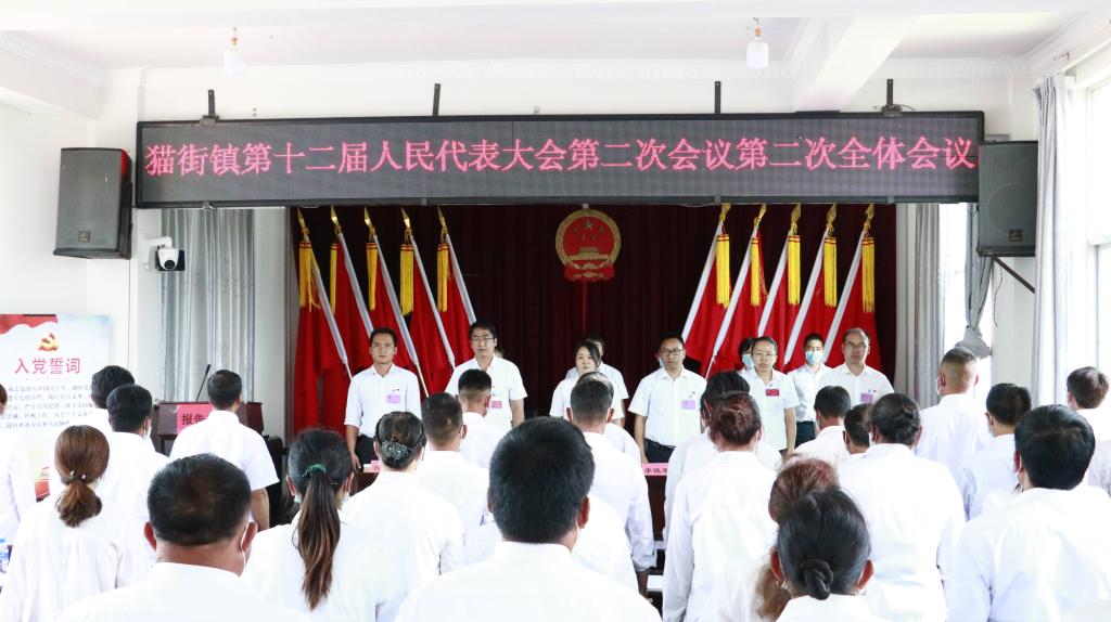 本次大会立足于猫街镇实际,从全镇改革发展稳定的大局出发,发扬民主,凝心聚力。与会代表以严肃认真的态度、积极负责的精神,履行代表职责,发挥模范作用,充分反映人民群众的意愿和呼声。大会按照法定程序,在充分酝酿的基础上通过《选举办法》、猫街镇人民政府镇长候选人名单、总监票人、监票人名单,以无记名投票方式选举杨海同志为猫街镇人民政府镇长,当场颁发当选证书并举行宪法宣誓,圆满完成各项议程!