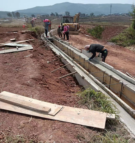 近日,位于武定县狮山镇姚铭村委会旧州村民小组的春灌沟渠及机耕路建设项目施工现场,挖掘机不断轰鸣来回作业,工人们忙着修沟筑路,呈现出一派热火朝天的繁忙景象。