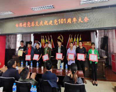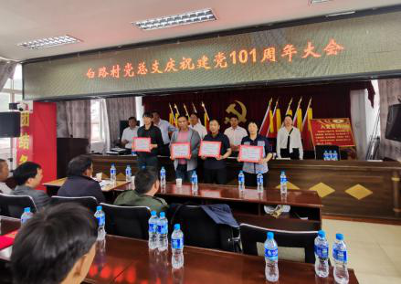 组织颁发奖状。村党总支书记、村委会主任李俊同志宣读《中共白路村党总支关于表扬2021年度先进党支部、优秀共产党员和优秀党务工作者的决定》,为白路村先进党支部、优秀党务工作者、优秀共产党员颁发了奖状,激励各村组党支部和广大党员向榜样学习,进一步增强了全体党员的荣誉感、使命感,汇聚了全体党员为建设美丽、和谐、文明白路的信心和决心。