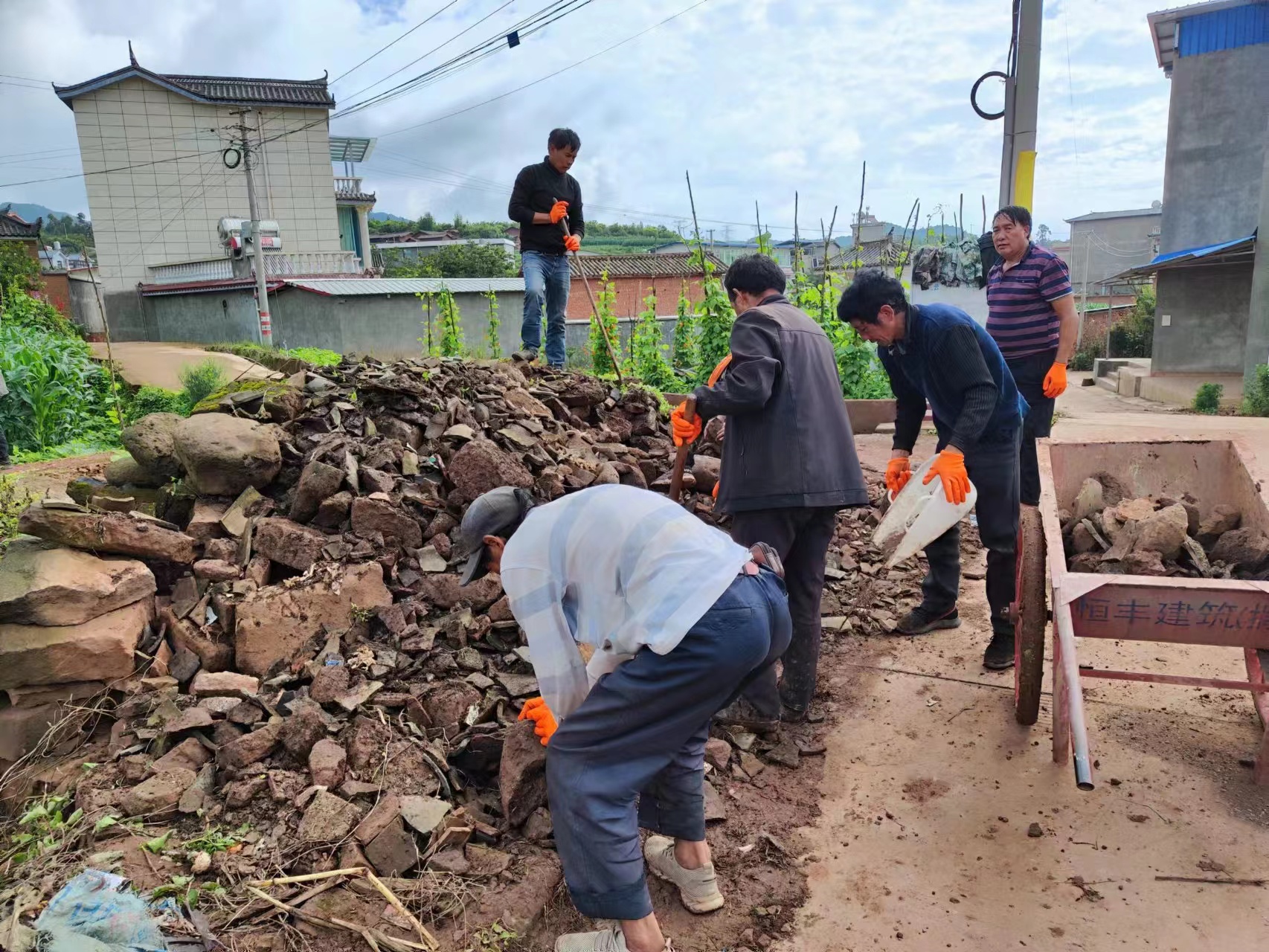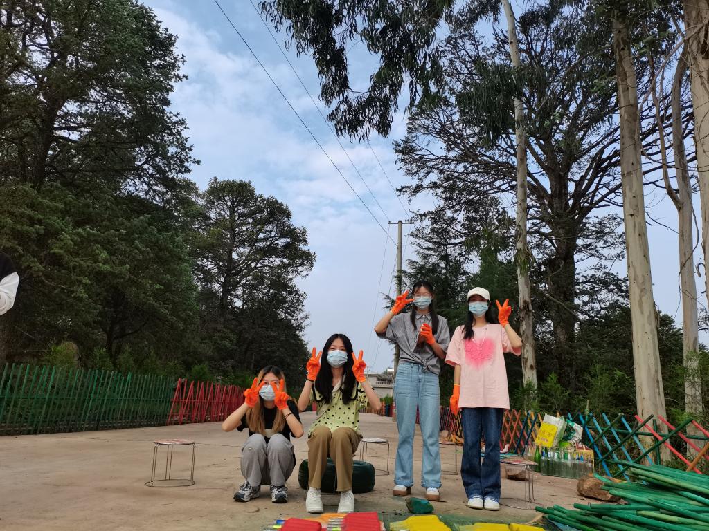 “玻璃瓶可以用来做成玻璃墙或者路面”“轮胎可以做成茶壶或者沙发”“雨鞋可以用来栽花”“这块空地用瓦片围起来做小花园”废物利用这一创意由农大学生率先发起,在清理路面垃圾的时候,学生们突发奇想,把酒瓶、石子用于建设美丽乡村的点缀,在他们的带动下,村里的村民、党员纷纷将酒瓶、奶粉桶等废旧物品拿出来,用于涂鸦美化村庄。云南农业大学实践团队通过实地考察确定创作思路后,结合本村实际现状对绘画的瓦片、轮胎、花盆确定了内容。师生们打底稿、上色,分工合作,一丝不苟,不顾高温酷暑,将一幅幅色彩鲜艳、主题鲜明的作品“搬上”了泥土外墙,全力打造“高颜值”的美丽村庄。