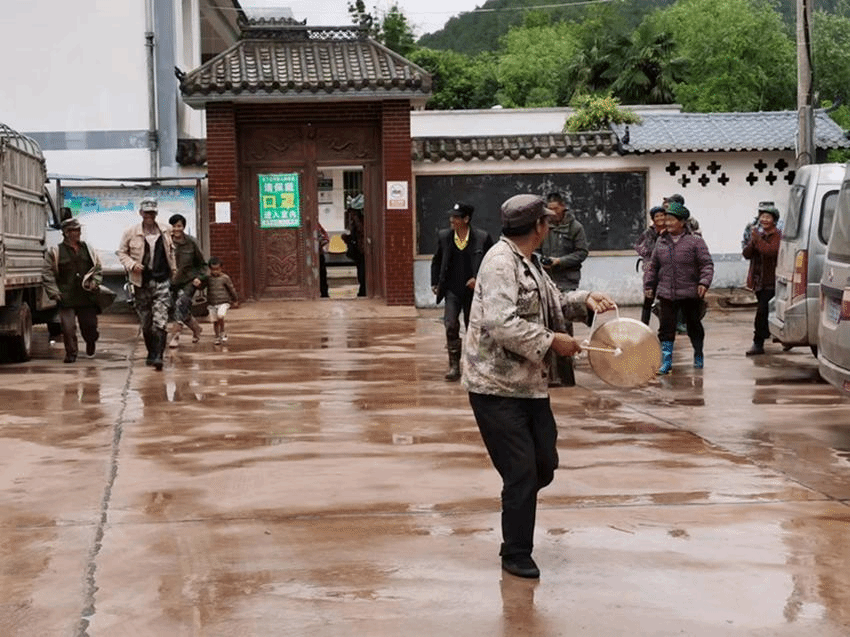 演练开始,村应急指挥部接到村民小组长报告,大西邑村发生山洪灾害的信息后,迅速组织村应急救援队伍,立即赶赴受灾前线展开救援。现场所有参演民兵按救援职责,被分为疏散组、搜救组和灾害评估组。在接到村委会警报器示警后,民兵队伍立即组织到位,经指挥长下达指令,疏散组前往低洼危险区,按先人员后财产的原则,组织群众按安全线路转移;搜救组随后对失联掉队人员进行搜救,并组织医护人员对受伤群众进行抢治;待救援工作基本落定后,灾害评估组对灾害初步统计并予以上报。