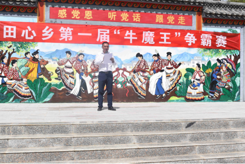 为巩固拓展脱贫攻坚成果同乡村振兴有效衔接,壮大肉牛养殖产业,为种公牛养殖户牵线搭桥,推广优良品种。上午9:00,田心乡首届“牛魔王”争霸赛在鸡街子村拉开帷幕,来自各地的27头壮牛齐聚一堂,争夺“牛魔王”称号。炎炎烈日下,参赛选手“牛”气十足,牛主们热情高涨,“牛魔王”争霸赛俨然成为了田心群众交流科学养牛技术的盛会。