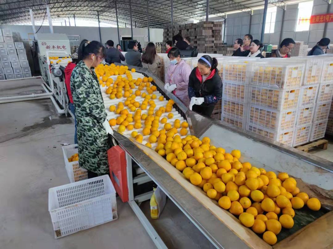 崔同富一行在达卧村查看柑橘种植基地、水果包装厂