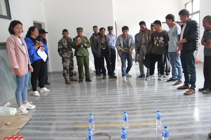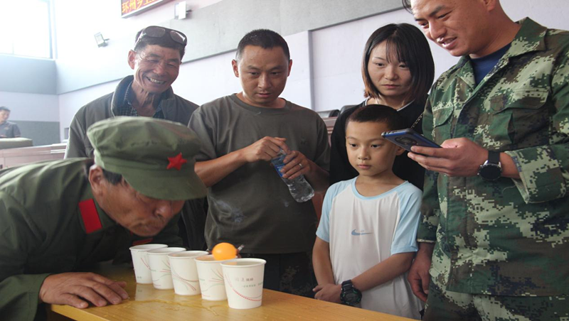 座谈会结束后组织退伍老兵开展升国旗、叠被子比赛、吹乒乓球比赛、套圈夺宝、双升等活动。
