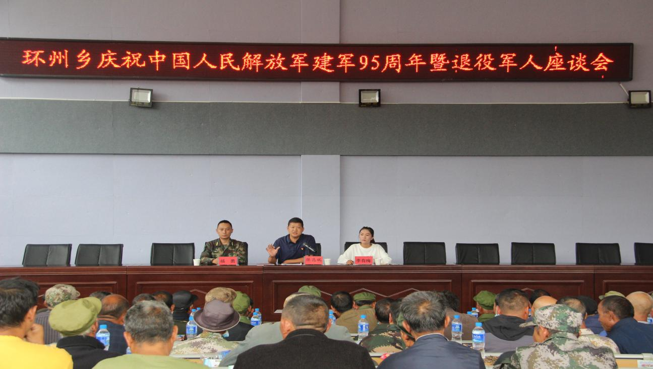 开展座谈交流座谈会上,环州乡人民政府党委副书记、乡长陈选斌围绕:不忘初心,继续履行好使命 ;努力工作,做新时代的弄潮儿;永葆军人本色,绽放别样精彩三个方面激励同志们无论岁月怎样流逝,军人的荣誉永远不会褪色,军人的烙印永远擦不掉、抹不去。让我们继续保持和弘扬人民军队光荣传统,始终保持蓬勃朝气,昂扬锐气洁然正气,扎扎实实做好本职工作,为我乡各项事业发展做出自己应有的贡献。各村委会退伍老兵代表进行交流发言。