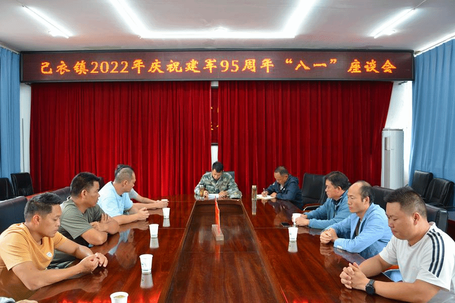 在2022年8月的第一天,我们迎来建军95周年这一伟大的节日。8月1日下午,己衣镇召开“庆祝‘八·一’建军95周年退伍军人座谈会”,庆祝中国人民解放军建军95周年,回顾军旅生涯,交流工作体会,凝聚奋进力量。镇级机关站所10名退役军人和分管武装、退役军人事务的副镇长参加座谈。