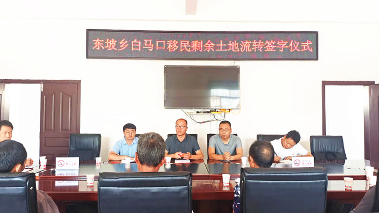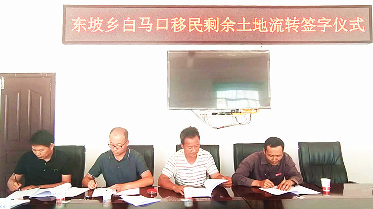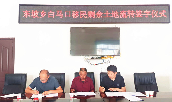 自乌东德水电站建设以来,东坡乡共搬出移民514户1678人,各村集体剩余土地1100余亩。为解决困扰白马口移民因远迁后土地闲置、纠纷多的问题,大力促进村民积极参与土地流转,盘活撂荒、闲置耕地,唤醒“沉睡”土地资产,力争土地连片规模化流转、集约化经营,以更大的力度激发农村土地资源要素活力。东坡乡加强政策宣传,多次组织干部职工到金沙社区宣传有关土地的法律法规,让移民了解自己对于土地的权利和义务;宣传土地流转经营权带来的效益,移民有权利将经营权有偿出租出去,既可保持土地性质不变化,又能实现土地流转,增加土地收入,发挥土地最大的效益。2022年8月10日,东坡乡白马口移民剩余土地流转签字仪式在金沙社区举行。规模化流转土地400多亩,其中原白马口一组180亩,万希德200亩,向阳36亩。土地流转价格为300元/亩左右,为移民增收10万余元。