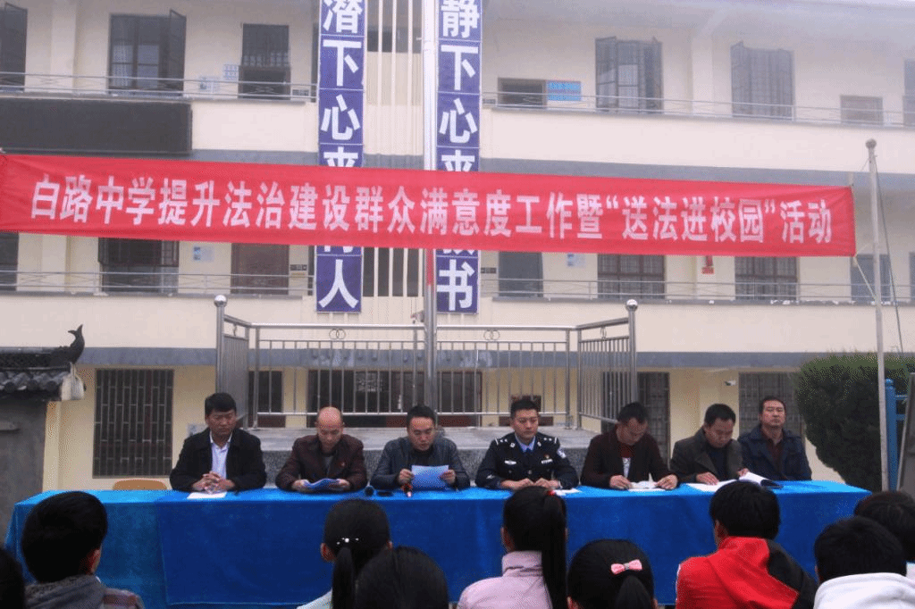 为做好校园安全管理和学生安全教育,2018年10月10日下午,白路派出所在认真做好校园安全保卫和综合治理工作的基础上,进一步明确工作职责,深入辖区白路中学开展提升法治建设群众满意度工作暨“送法进校园”活动。此次活动由白路镇综治办、派出所、林业站、白路中学全体师生计500余人参加。