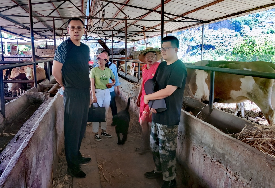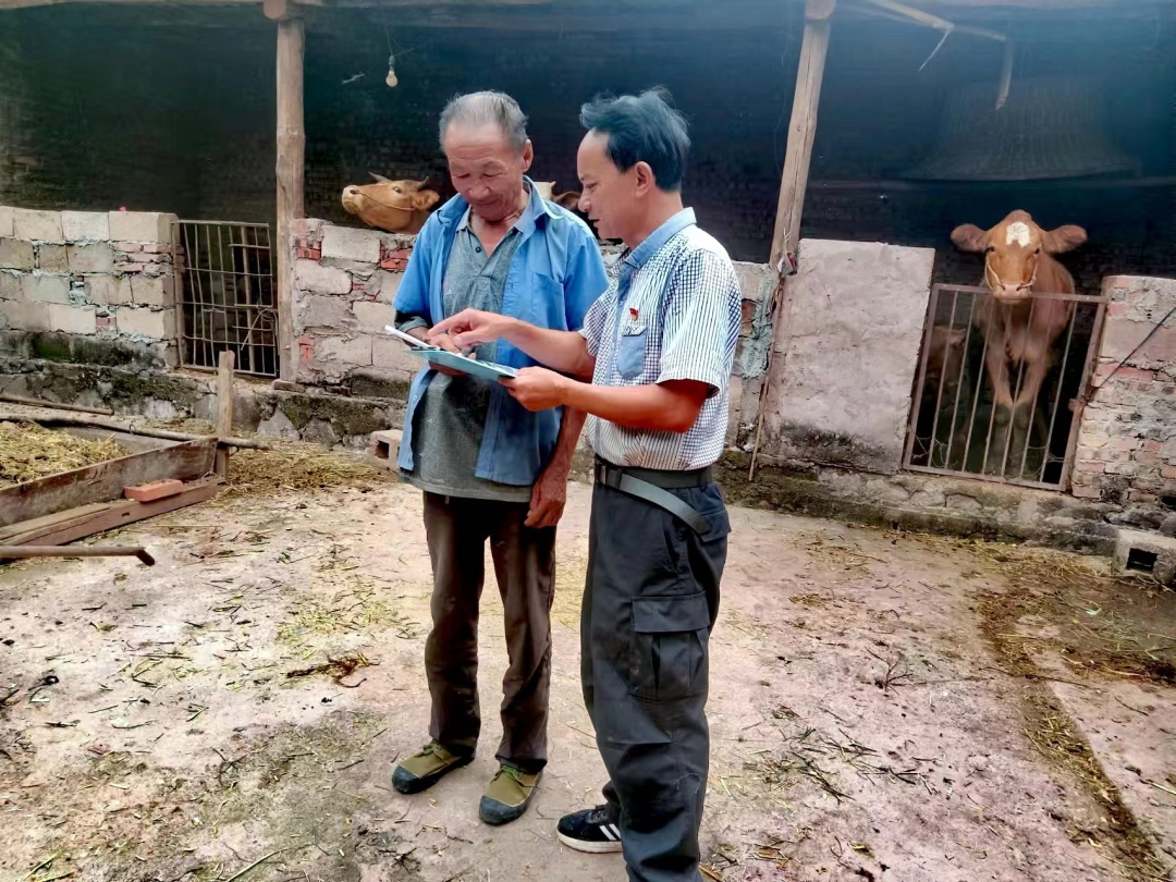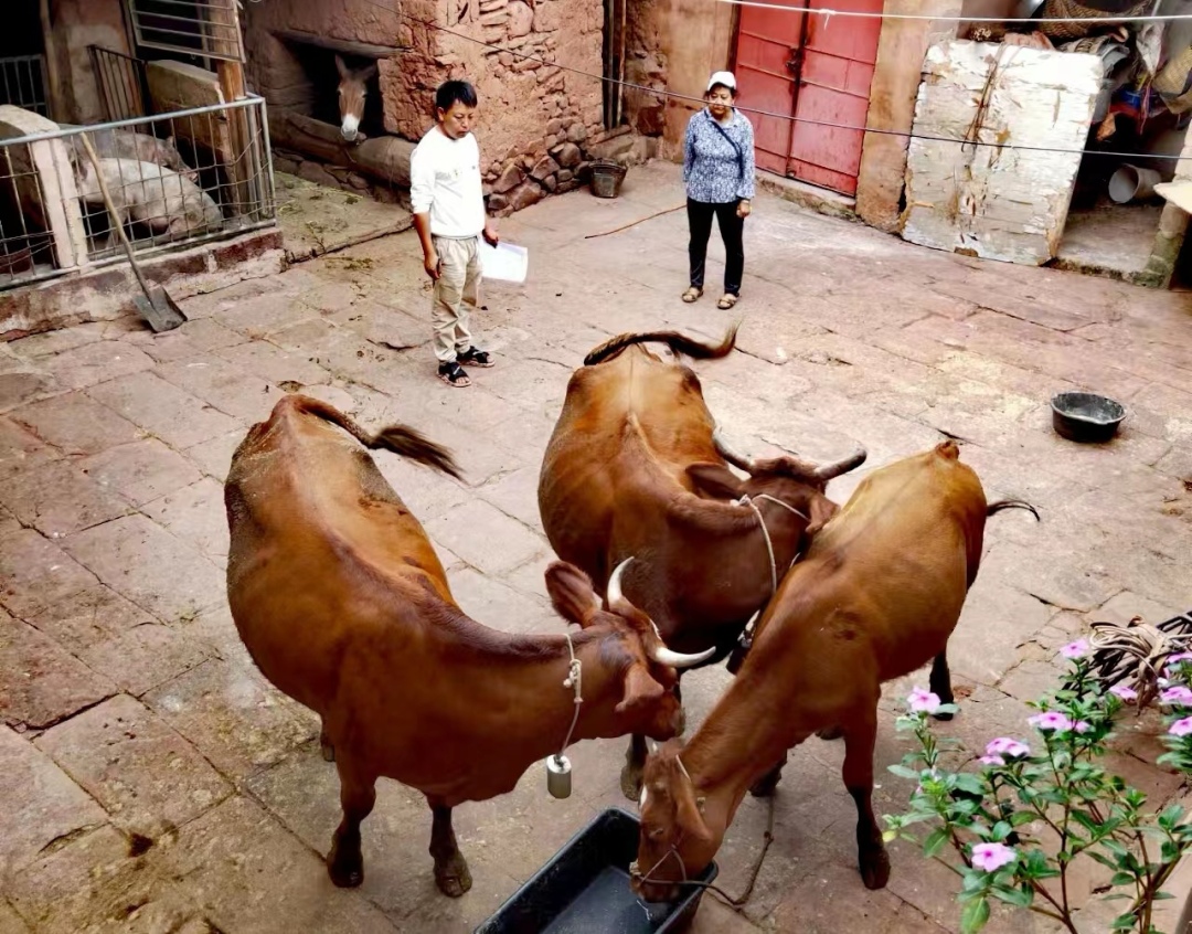 乡、村工作队员到农户家中摸排肉牛养殖底数