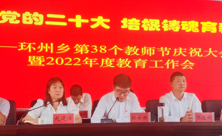 环州乡党委书记杜彬彬同志代表乡党委、政府向全乡扎根基层、贡献芳华的广大教育工作者致以节日的问候和崇高的敬意!并向受到表彰的先进个人和先进集体表示热烈的祝贺!向关心支持教育事业的社会各界人士表示衷心的感谢!