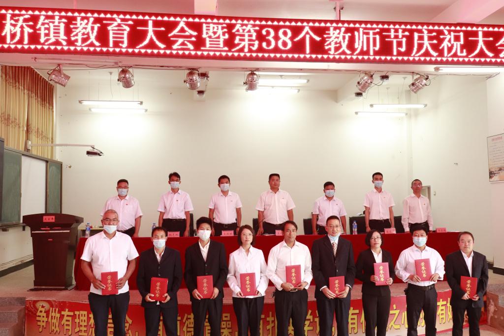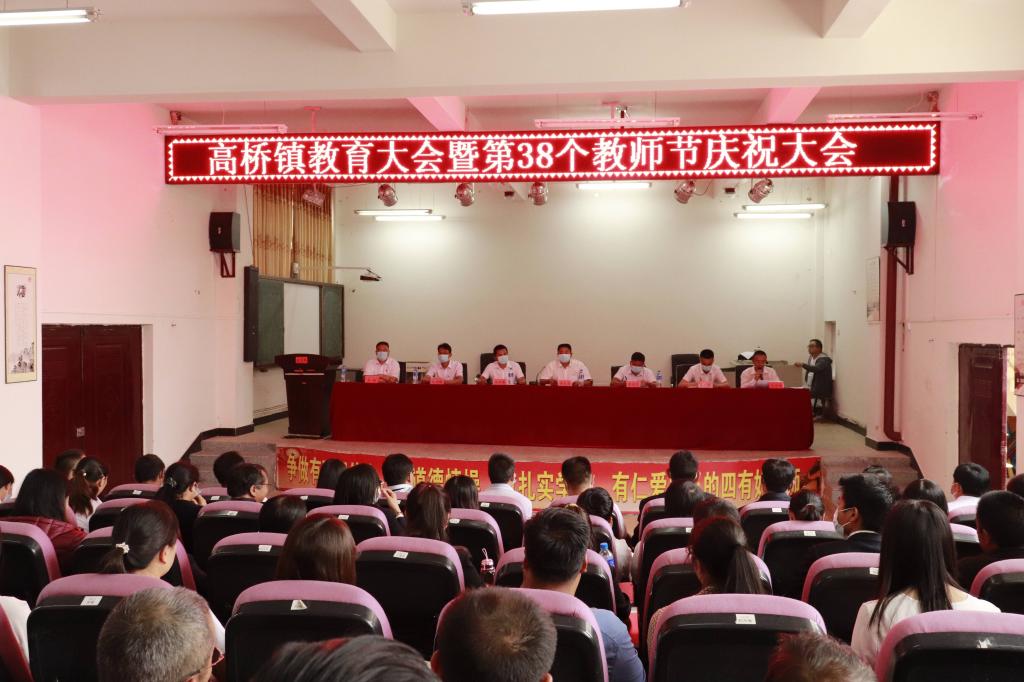 满园桃李春风润,硕果飘香节日来。在第38个教师节即将来临之际,9月7日下午,在高桥中心完小大会议室召开2022年教育大会暨第38个教师节庆祝大会。高桥镇党政班子成员、镇级机关各办、中心、所负责人、各村党总支书记、村委会主任、中、小学班子成员、获奖教师共110余人参会,会议由镇人民政府副镇长王宏昶主持。