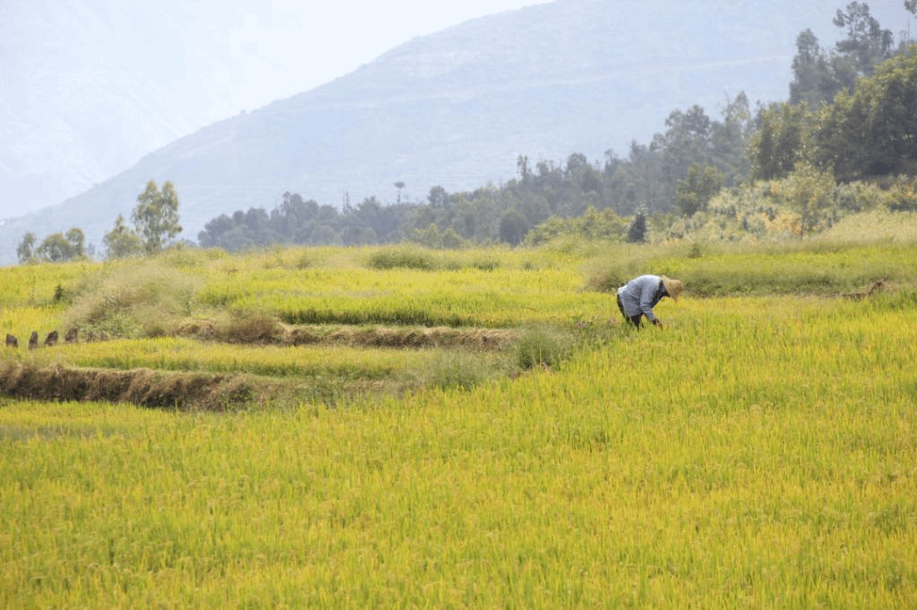 “喜看稻菽千重浪,遍地英雄下夕烟。”走进东坡傣族乡达卧村委会,春耕种下的绿色秧苗披上了金色的外衣,广袤的田野一片金黄,连片的稻海,散发出沁人心脾的稻香,枝头上,沉甸甸的稻谷,压弯了稻穗,绘就出一幅好“丰”景。
