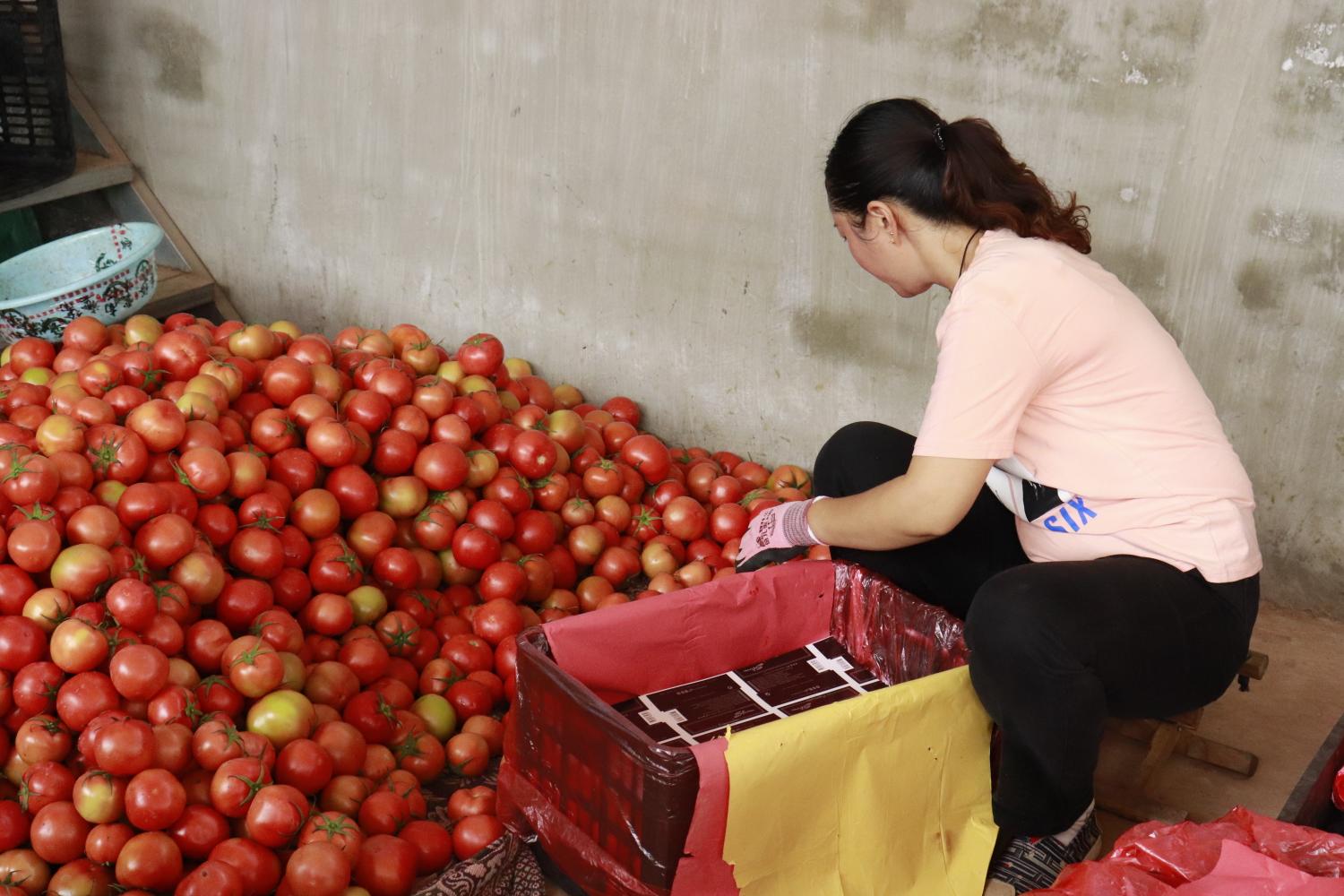 来自广西的收购商邹明洪正在高桥镇收购西红柿,目前已经收购200多吨,准备运往广西一带进行销售。