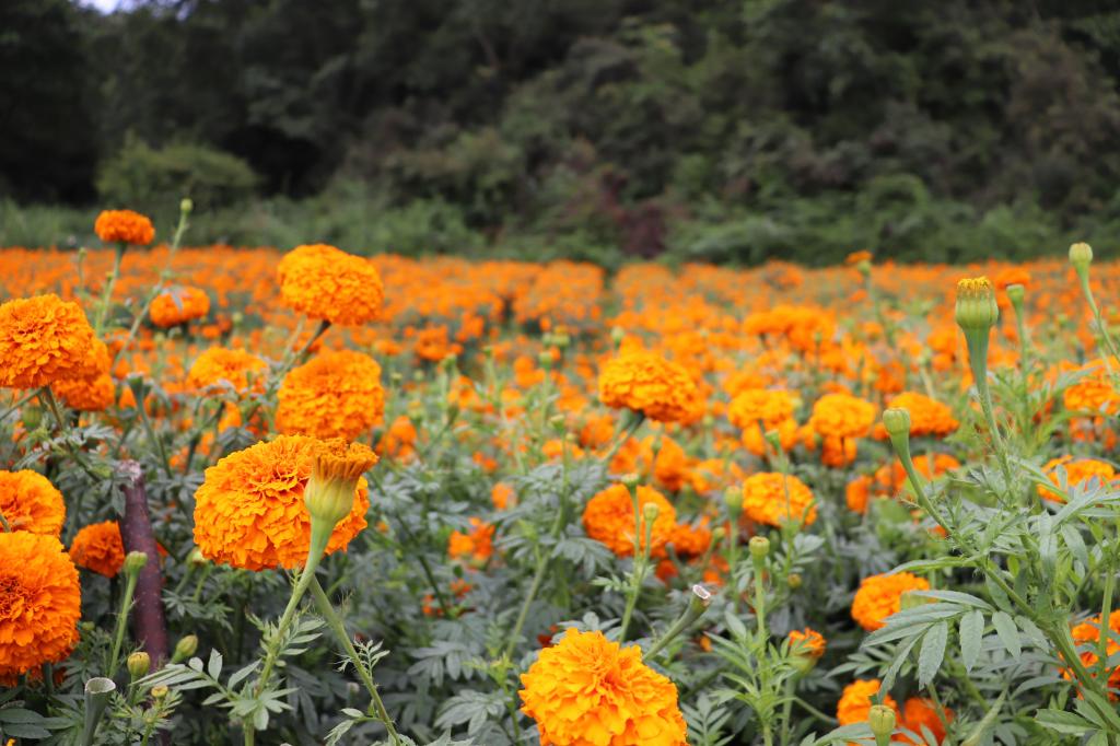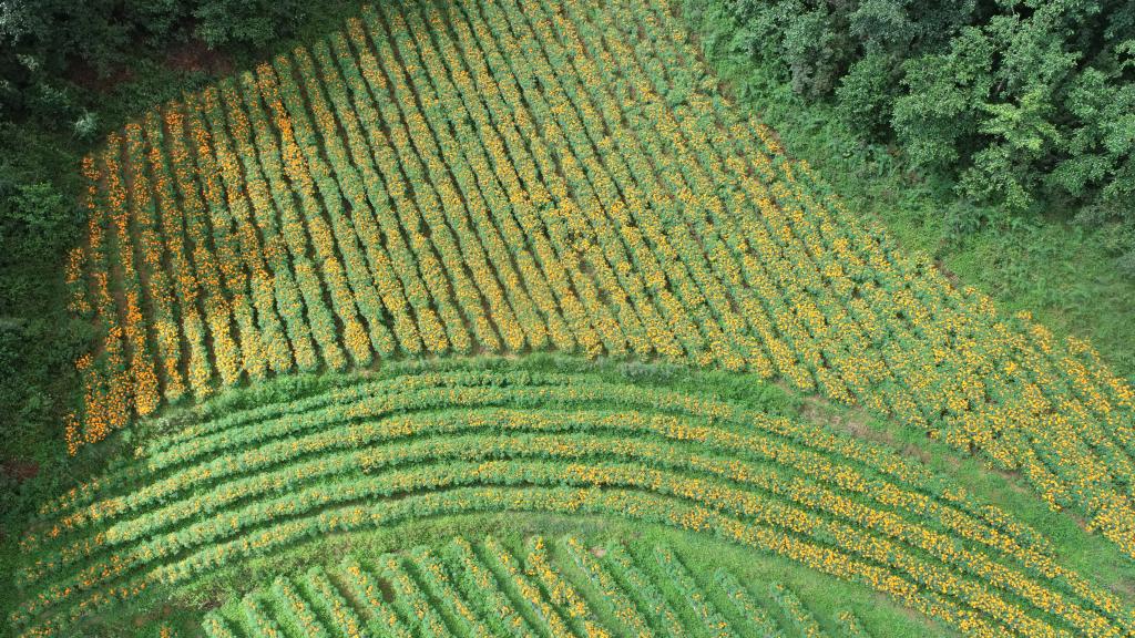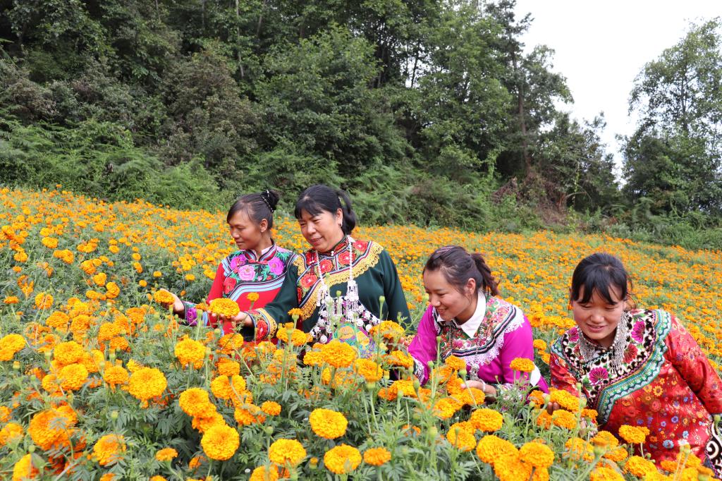 几场夏雨过后,金灿灿的万寿菊在武定县高桥镇竞相开放,村民忙着采收万寿菊,田间地头一派花海丰收繁忙景象。好风景带来好“钱”景,百亩万寿菊成了高桥整群众增加收入的“致富花”。