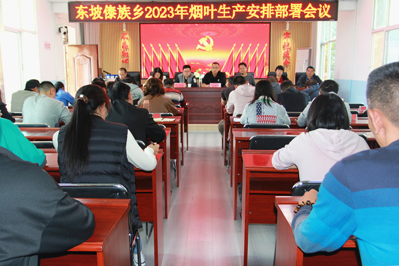 为及早谋划部署2023年烤烟生产工作,进一步提高我乡烟叶生产水平,实现我乡烟叶产业高质量发展。10月31日,东坡傣族乡召开2023年度烟叶生产安排部署会议。乡党委副书记白云涛主持会议,全乡党政领导、干部职工、8个村委会四职干部、全体驻村工作队员共90人参加会议。