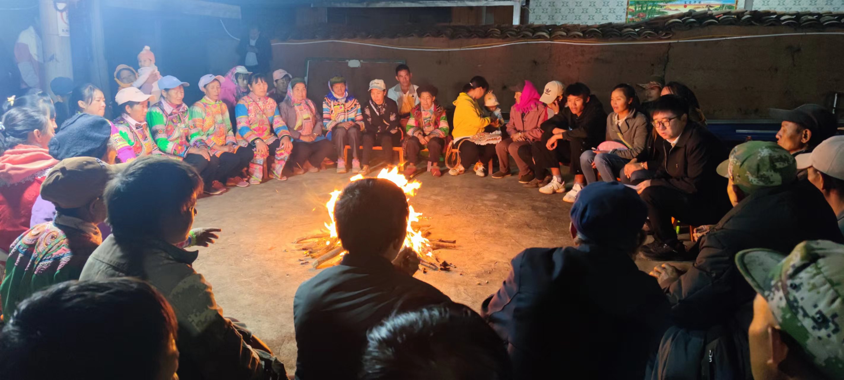 环州乡是武定县西北边陲一山区乡镇,面积246平方千米,距县城112公里。西与元谋县接壤,北邻金沙江大峡谷,与四川省的会理县隔江相望。在这块古老的土地上,世代生息着彝族、傈僳族、汉族等多个民族。进入金秋十月,环州乡早晚温差大、天气寒冷,烧火塘既方便做饭,也是为了御寒取暖,久而久之,就形成了烤火塘的习惯。在党的二十大胜利召开之际,为把党的声音传到千家万户,环州乡党政主要领导带领各干部职工“踏着月光、扛着信仰、围着火塘”在全乡各村召开“火塘会议”传达党的二十大精神,致力把基层党组织使命挑在肩上,把“忠诚之旗”举在手上。